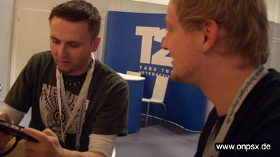 Nach dem Abstecher in die Antike, führte uns unsere Tour zu Gangs of London, dem neuen The Getaway Ableger für die PSP. Auf den ersten Blick machte das Spiel technisch eine gute Figur, die Framerate war konstant und flüssig, die Ladezeiten kurz und London sah ziemlich gut aus. Was allerdings sofort auffiel, die Autos waren nicht mehr lizenziert. Macht aber nix, denn sowohl das Gunplay zu Fuß, als auch die Verfolgungsjagden waren relativ spaßig. Nur im Touristenmodus, wo man Londons Sehenswürdigkeiten fotografieren muss, stieg ich nicht ganz durch. Bevor ich jedoch ein finales Urteil fälle, möchte ich noch ein wenig mit der bereits bestellten Preview Version zocken. Auf dem Sony Stand gab es zwar noch Rouge Galaxy (das neue Action RPG von Level 5) und Ace Combat: The Belkan War zu sehen, aber angesichts wenig Zeit, konnten wir die Spiele wenn überhaupt nur kurz anspielen. Weiter ging es dann nämlich sofort zum PS3 Theatre, welches ein paar schöne Sitzbänke bot und auf riesigen HD Bildschirmen diverse E3 Trailer zeigte. Leider bekam man jedoch nichts Neues zu sehen, weswegen wir nicht allzu viel Zeit an diesem Ort „verschwendeten“. Viel interessanter war dagegen die ausgestellte echte PlayStation 3, die von zwei Sony Mitarbeitern der Presse präsentiert wurde. Neben der PS3, wurde auch der Controller gezeigt und wir ließen uns nicht lange bitten und nahmen ihn selbst in die Hand.