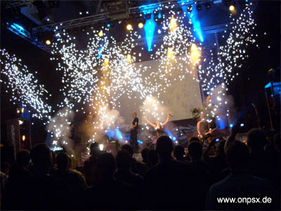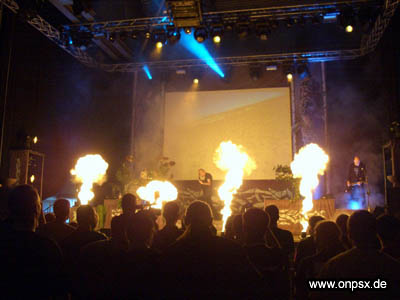 Jetzt trennten sich unsere Wege, Flek versuchte sein Glück, beim alljährlichen Sony Buffet und wir machten uns auf zum Within Temptation Konzert, die extra für Chronicles of Spellborn sogar ein Lied geschrieben haben. Die Bühne,. Die man für die Holländer aufgebaut hatte, war riesig und in den folgenden 30 Minuten gab es nicht nur Hits wie Mother Earth zu hören, sondern auch eine gute Pyro und Lichtshow. Nur etwas laut war das Ganze, was sich dank der riesigen Halle auch noch durch allgegenwärtigen Hall verschlimmerte. Aber egal, immerhin gab es kostenlos Getränke dazu, was für einen schönen Messetagabschluss sorgte.