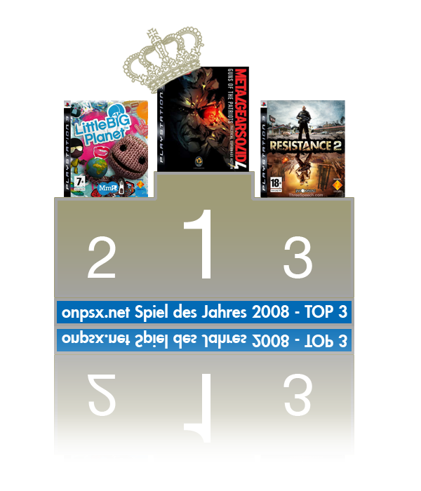 Es ist vollbracht! Ihr habt das PlayStation Spiel des Jahres 2008 gewählt. Wirkliche Überraschungen blieben zwar aus, trotzdem ist es interessant zu sehen, dass eure Favoriten ausschließlich PS3 Titel sind, die exklusiv für das System erschienen sind. Und hier sind sie nun, die besten Drei: