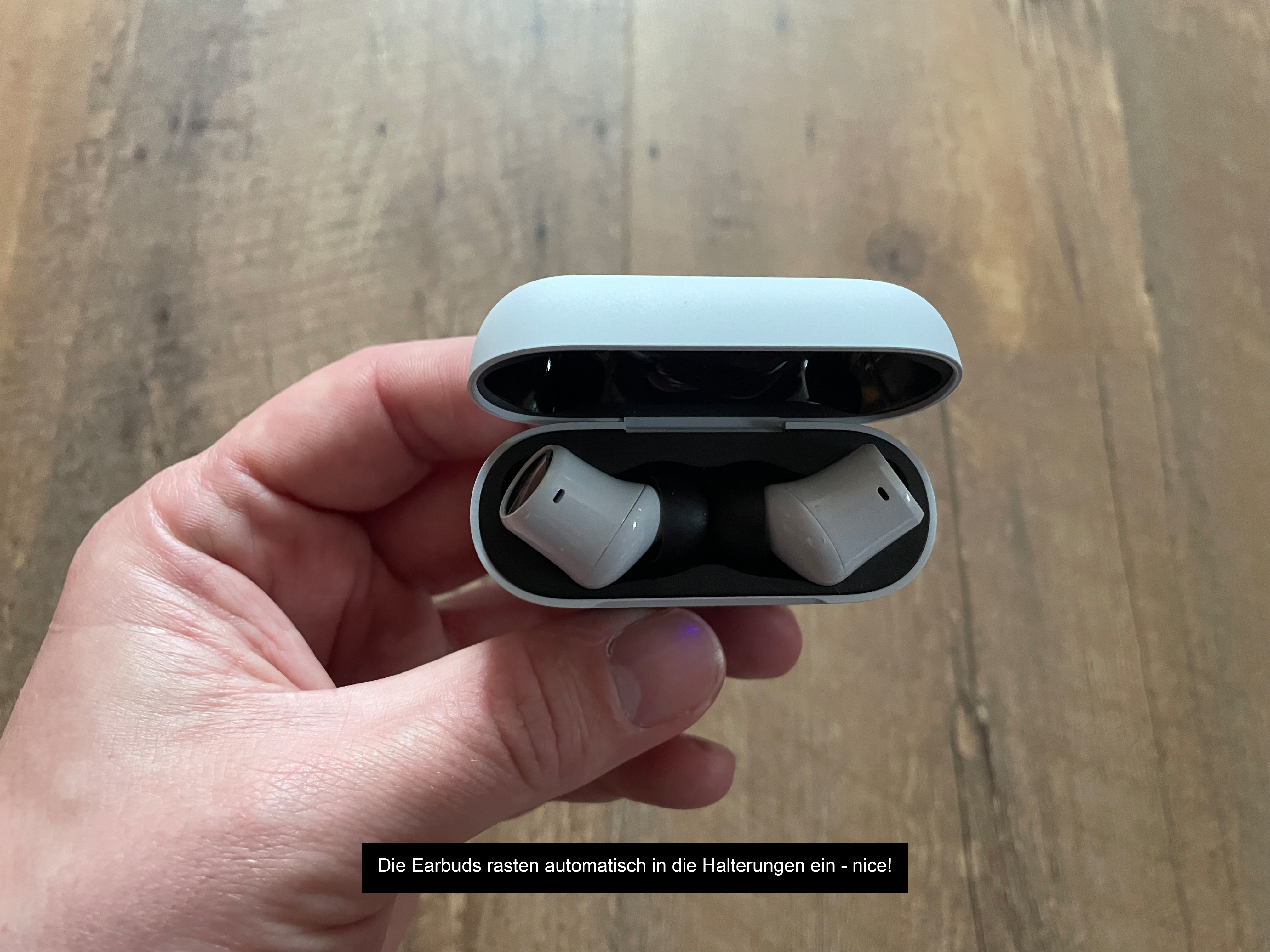 Die Nutzungsdauer hängt von ein paar Faktoren ab. Natürlich spielen Beleuchtung, aktive Geräuschunterdrückung und Lautstärke eine große Rolle. Sind alle Sachen aktiviert, kommt man auf rund 4 Stunden Nutzungsdauer, was im Vergleich bloß Durchschnitt ist. Deaktiviert man die Beleuchtung und das ANC sind immerhin 6,5 Stunden drin. So oder so – die Teile werden schnell im Etui aufgeladen, vor allem da dieser unterwegs auch als Energiespeicher fungiert. Anbei die harten Fakten: