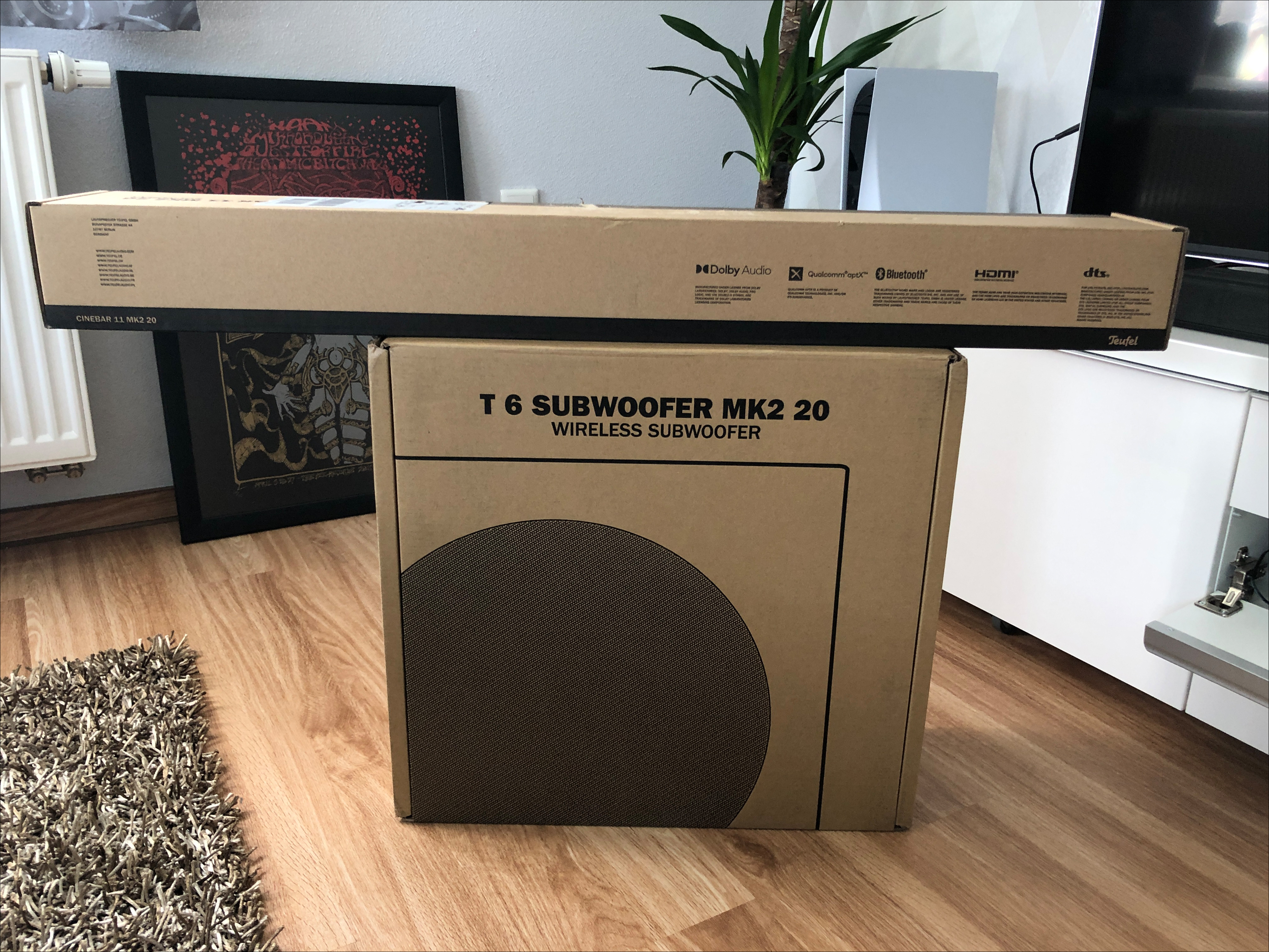 Am 19. November 2020 erschien die PlayStation 5. Mit dem Launch der neuen Konsole, sollte auch ein neuer 4K TV und ein neues Soundsystem her – statt einer 5.1 Anlage mit Receiver, sollte jetzt eine schlanke Soundbar mit drahtlosem Subwoofer in das Wohnzimmer. Zwar war mir bewusst, dass diese Kombination kein richtiges Surround-Sound System mit fünf Lautsprechern und Subwoofer ersetzen würde, aber im Endeffekt ging es um fehlenden Platz, weniger Kabel und eine allgemein aufgeräumte Wohlfühloase. Debattierbar bleibt auch der Surround-Sound – denn bis auf wenige Ausnahmen (Filme / Spiele) fand ich persönlich das Erlebnis bislang nicht gerade überragend und schon gar nicht „Kino-like“. Von daher wurden im Vorfeld bereits einige Kandidaten rausgesucht. Wegen der Pandemie war es damals bereits schlecht möglich, mal im Laden ein paar Soundbars auszuprobieren.