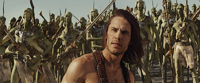 John Carter (Taylor Kitsch) hat genug vom Krieg. Immerhin hat er durch ihn seine komplette Familie verloren. Da kann ein undankbarer Offizier herumkommandieren wie er will. Carter hat keinen Bock mehr. Eines Tages schafft es Carter sich zu verpissen, trifft jedoch auf der Flucht auf ein paar Indianer. Mit den "eigenen" Leuten im Rücken ist aber auch nicht zu spaßen und so verdrückt er sich in einer Höhle. Dort schießt er einen komisch gekleideten Typen über den Haufen und bekommt beim anfassen eines Amulettes einen Blackout. Wieder aufgewacht steht er völlig desillusioniert in einer ihm unbekannten Landschaft, welche sich bald als Mars, bzw. bei den Einheimischen unter Barsoom bekannt, zu erkennen gibt. Nachdem er zuerst von den Thark Anführer Tars Tarkas (Willem Dafoe) aufgegriffen wird, dauert es auch nicht lange, bis sich Carter auch hier auf dem Mars Ärger einhandelt und schließlich sogar zwischen die Fronten eines Krieges gerät. Natürlich darf hier auch eine Prinzessin (Lynn Collins) nicht fehlen, in die sich unser Antiheld verliebt.
