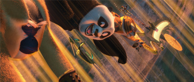 Die ganze Reise wird unglaublich rasant erzählt und die Martial Arts Action steigert sich von Minute zu Minute. Dabei lies man den skurrilen Ideen freien lauf, was für viele tolle Szenen sorgt. Höhepunkt sind hier eindeutig die Rikschafahrt und ein witziger Kampf der furiosen Fünf in einem Drachenkostüm. Die Animationsqualität und der Detailreichtum sind den ganzen Film über auf einem hohem Niveau und es gibt massig zu entdecken. Dabei agiert Panda Po gewohnt tolpatschig, was besonders die kleineren Zuschauen ansprechen dürfte. Man merkt auch wieder deutlich, dass Panda Po voll und ganz auf Jack Black zugeschnitten wurde. Leider wird dies wieder mit Hape Kerkeling etwas ausgebremst. Aber „Kung Fu Panda 2“ hat auch viele ernste und düstere Seiten. So wird nicht nur der Massenmord thematisiert (immerhin baut die gesamte Story darauf auf!), sondern auch die Frage nach dem „Wer bin ich?“ und dem inneren Frieden. Leider bleiben bis auf Po und Lord Shen alle anderen Charaktere wie schon im Vorgänger blass und austauschbar. Dennoch sticht die Story eben wegen der ernsteren Themen aus dem Einheitsbrei heraus.