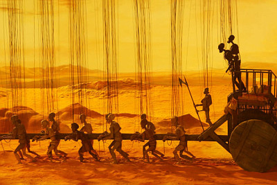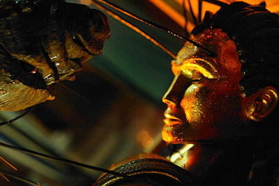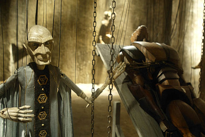 Aber auch das alltägliche Leben wird von den Strings beeinflusst. So gibt es keinerlei Dächer und beim schliessen einer Tür wird einfach eine Querstrebe nach oben gezogen. Interessant ist auch die Inszenierung einer Geburt und den Tod durch Altersschwäche. Aber wir wollen jetzt hier nich alle coolen Details verraten. Leider bringen die Marionetten auch einige Probleme mit sich. So schaut einiges etwas abgehackt und ungelenk aus und es gibt bis auf die Bewegung der Augen keine Mimik. Zudem gibt es auch Szenen, wo man die Figuren nur denken hört, was letztendlich etwas verwirrend ist. Dank der Puppenspieler und der allgemeinen Inszenierung hat man sich aber auch recht schnell daran gewöhnt. Ebenfalls nicht ganz ausgearbeitet ist die Story. Hier ging man eher konventionelle Wege und machte keine Experimente. So bekommt man hier altbekanntes vorgesetzt (Shakespear light), was aber auch noch mit ein paar erzählerischen Problemen behaftet ist.