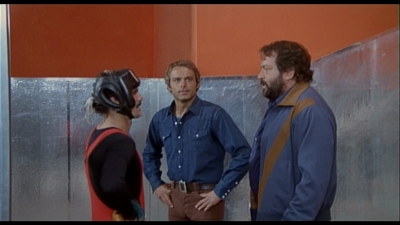 Man ist jedes Mal gespannt, was 3L so aus den alten Mastern heraus holt. Bei „Zwei wie Pech und Schwefel“ sieht man aber gleich in den ersten Einstellungen, dass 3L sehr gute Arbeit geleistet hat. Das Bild bietet, in Anbetracht des Alters und Budget des Filmes, eine hervorragende Schärfe, welche nur selten abfällt. Auch ist das Bild sehr ruhig und wabbert nur in zwei/drei Einstellungen. Leider wurde dies durch ein Zoom erkauft, was etwas Bildinformation schluckt. Aber immer noch besser als ein unruhiges Bild. Die Farben könnten dagegen etwas mehr Sättigung haben und in hellen Szenen überstrahlt das Bild etwas. Das Bildrauschen ist mal mehr mal weniger deutlich zu sehen, stets präsent, aber nicht wirklich störend. Alles in allem kann man aber mehr als zufrieden mit der Blu-ray sein!