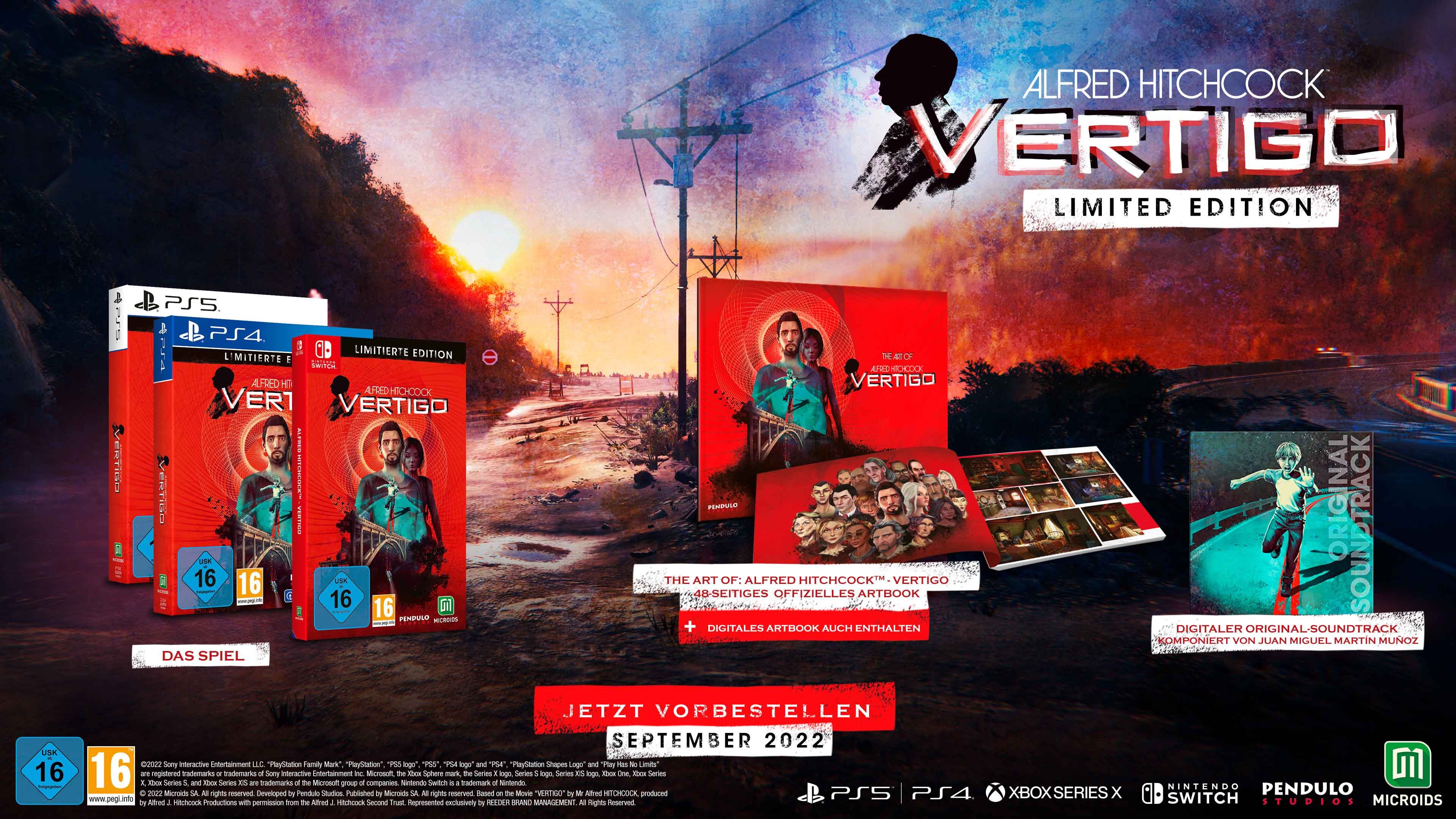 Microids hat bekannt gegeben, das die PS4 & PS5 Versionen von Alfred Hitchcock - Vertigo als Limited Edition im Handel erscheinen und bereits vorbestellt werden können. Das Spiel basiert lose auf dem gleichnamigen Film des berühmten Regisseurs Alfred Hitchcock.