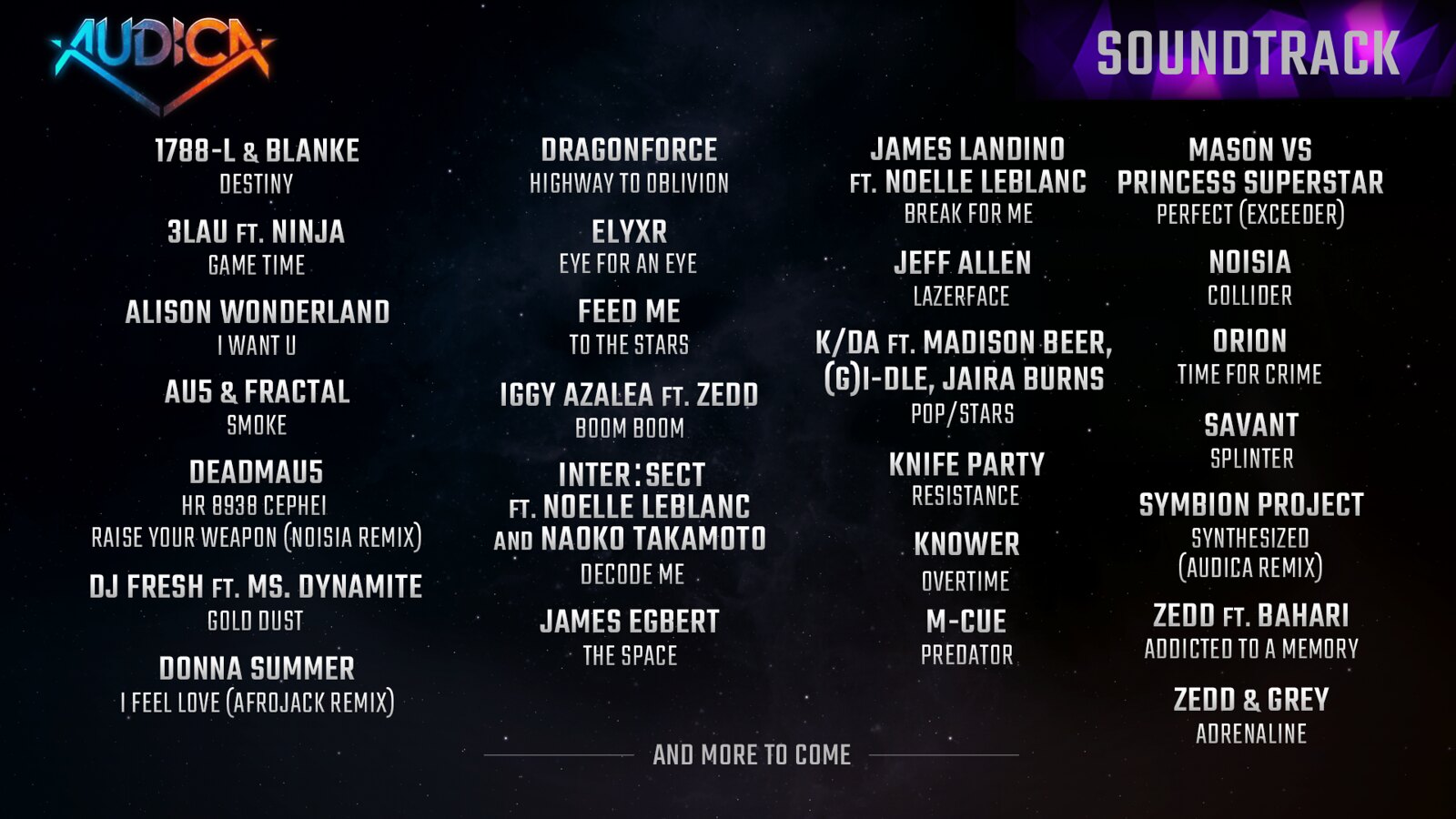 Neben dem Trailer gibt es auch eine Liste des Soundtracks: