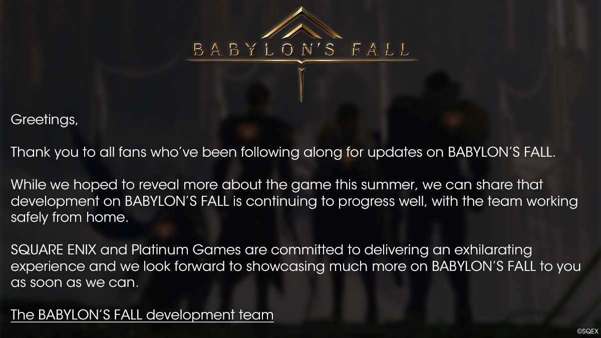 Das neue Actionspiel von Platinum Games und Square Enix wurde zwar bereits 2018 angekündigt, aber bislang gab es recht wenig darüber zu Berichten. Und so wie es aussieht, wird sich das in nächster Zukunft auch nicht ändern. Denn via Twitter hat man mitgeteilt, das man zwar diesen Sommer Neuigkeiten zum Spiel enthüllen wollte - aber das jetzt daraus nichts wird. Der Entwicklung des Spiels schreitet jedoch voran und alle Mitarbeiter arbeiten brav von zu Hause aus.
