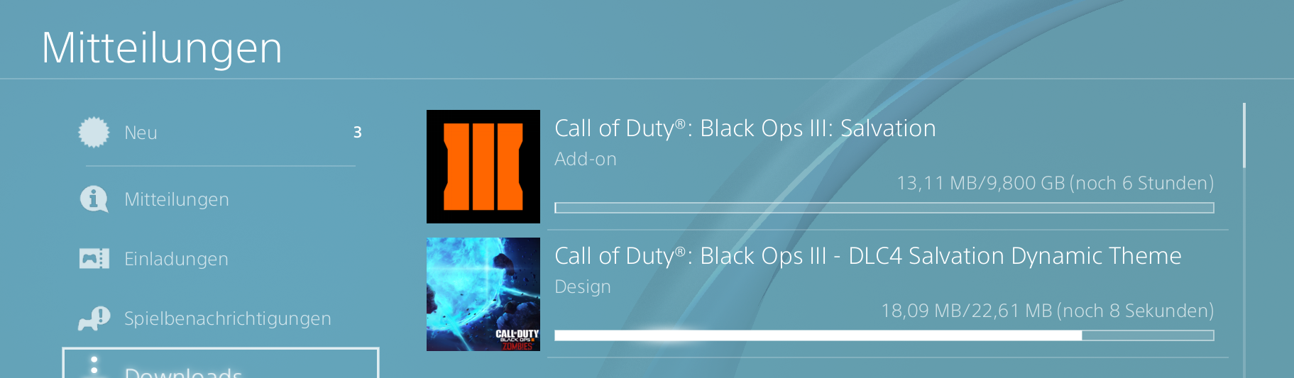 Salvation selbst ist 9,8GB groß und Vorbesteller bekommen auch noch ein 22MB großes dynamisches PS4-Theme. Ab Dienstag 6.9. geht es dann mit dem letzten Black Ops 3 DLC los.
