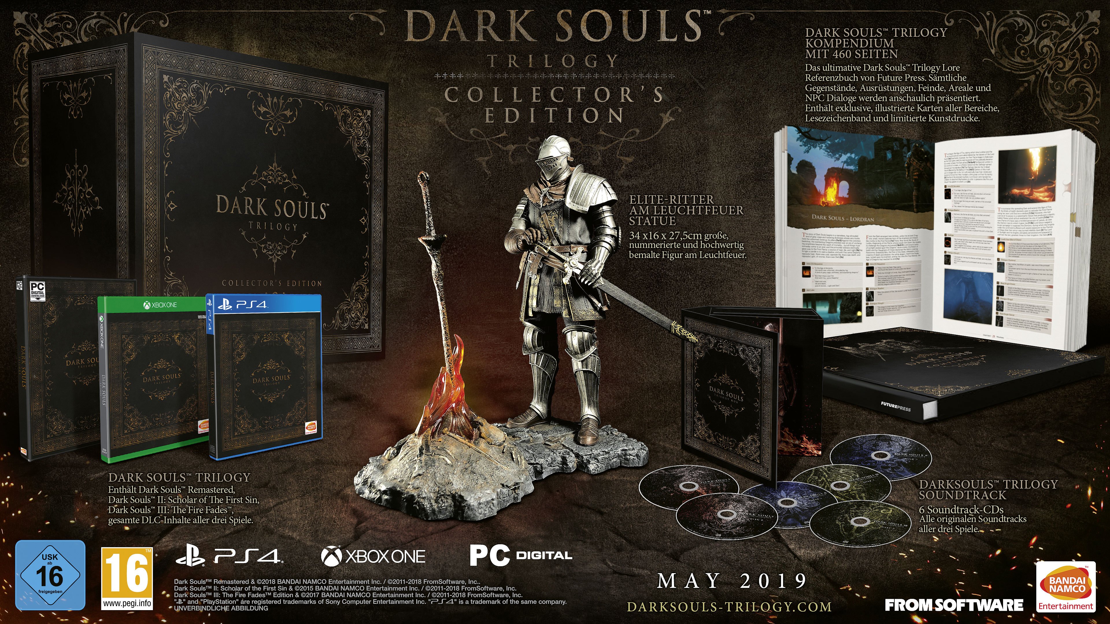Während die reguläre Dark Souls Trilogy am 01. März 2019 erscheinen wird, wird man ab dem 31. Mai 2019 die Möglichkeit haben, die Dark Souls: Trilogy Collector‘s Edition zu erwerben.