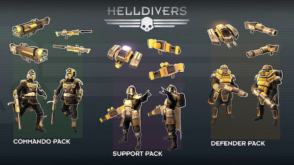 Wer von Helldivers nicht genug bekommen kann, kann sich diese Woche mit drei DLCs neue Ausrüstung verschaffen. Die drei Pakete kosten einzeln jeweils 2,99€ oder als Bundle 5,99€ und werden folgende Inhalte beinhalten