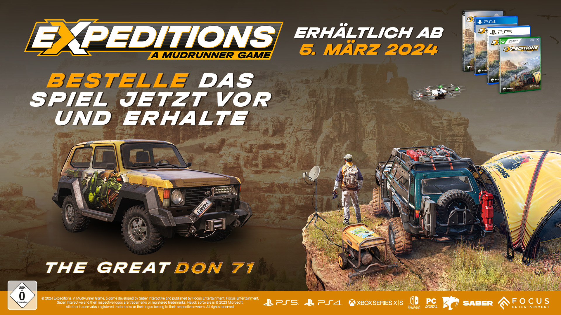 Expeditions: A MudRunner Game von Saber Interactive wird am 05. März 2024 für die PS4 & PS5 veröffentlicht. Vorbestellungen sind ab sofort möglich, damit sich eifrige Abenteurer ihren Platz an der Startlinie dieses bahnbrechenden Offroad-Erlebnisses sichern können.