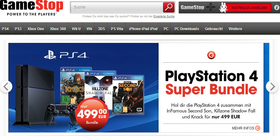 Gamestop nimmt Vorbestellungen für ein im Mai (vor. 16. Mai) verfügbares Super Bundle der PS4 entgegen. Für 499€ bekommt ihr die Konsole, einen Dualshock 4 Controller und die drei Sony Games Knack, Killzone: Shadow Fall und Infamous: Second Son dazu. Kein schlechtes Angebot also.