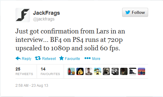 Gestern haben wir noch darüber berichtet, dass Battlefield 4 mit smoothen 60 Bildern pro Sekunde in der PS4 Fassung laufen wird und heute weiss man auch warum: Der Titel wird nur in der Standard HD Auflösung von 720p erstrahlen. Zwar skaliert der Titel auf 1080p, aber das geht zu Lasten der Bildqualität. Lars Gustavsson ist übrigens der Creative Director der Serie.