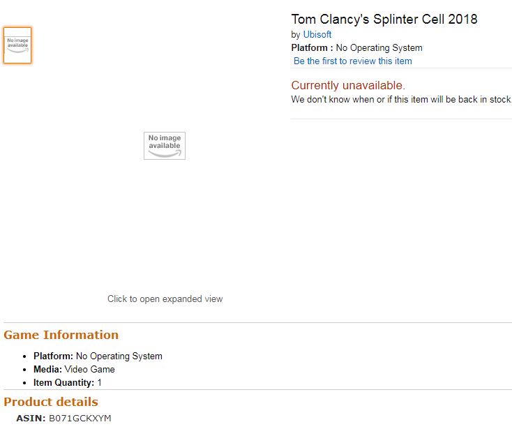 Ist da amazon Kanada etwas raus gerutscht? Zumindestens findet man derzeit den Produkteintrag "Splinter Cell 2018".