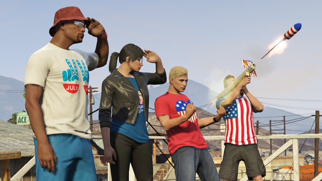 Diese speziellen Inhalte werden im Spiel bis Mitte Juli verfügbar sein (Wir werden in Kürze ein genaues Enddatum bekannt geben). Das automatische Update für das Independence Day Special enthält außerdem zusätzliche Verbesserungen für das Spiel, inklusive der Möglichkeit, die Spielersuche auf Abruf zu nutzen. Diese neue Option erlaubt es Spielern, eine Job-Einladung anzunehmen und im freien Modus weiterzuspielen, bis der Job genügend Spieler hat – das reduziert die Wartezeit, bis der Job losgeht. Für eine komplette Liste aller Änderungen und Verbesserungen besucht die Rockstar Support Seite.