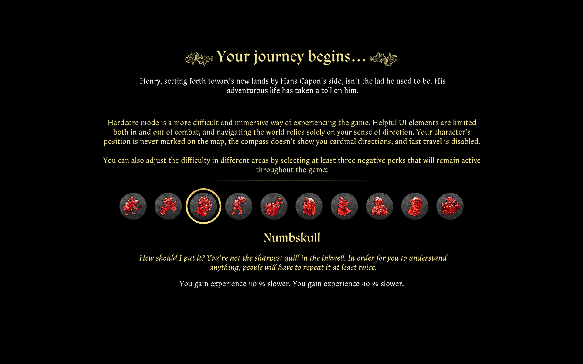Auf vielfachen Wunsch der Community gibt es nun auch einen optionalen Hardcore-Modus für Kingdom Come: Deliverance II. Dieser sorgt dafür, dass die Position der Spieler nicht mehr permanent auf der Karte angezeigt wird und es weder Kompass noch Schnellreise-Funktion gibt. Zusätzlich muss man sich zu Beginn des Spiels mindestens drei dauerhafte negative Eigenschaften auswählen wie z.B. „Rückenprobleme“, was dazu führt, dass man weniger Gewicht tragen kann. Oder „Schlafwandler“, was bedeutet, dass man am nächsten Morgen an zufälligen Orten aufwacht oder man wird ein „Hungriger Heinrich“ und ist noch mehr als sonst vom Essen besessen.