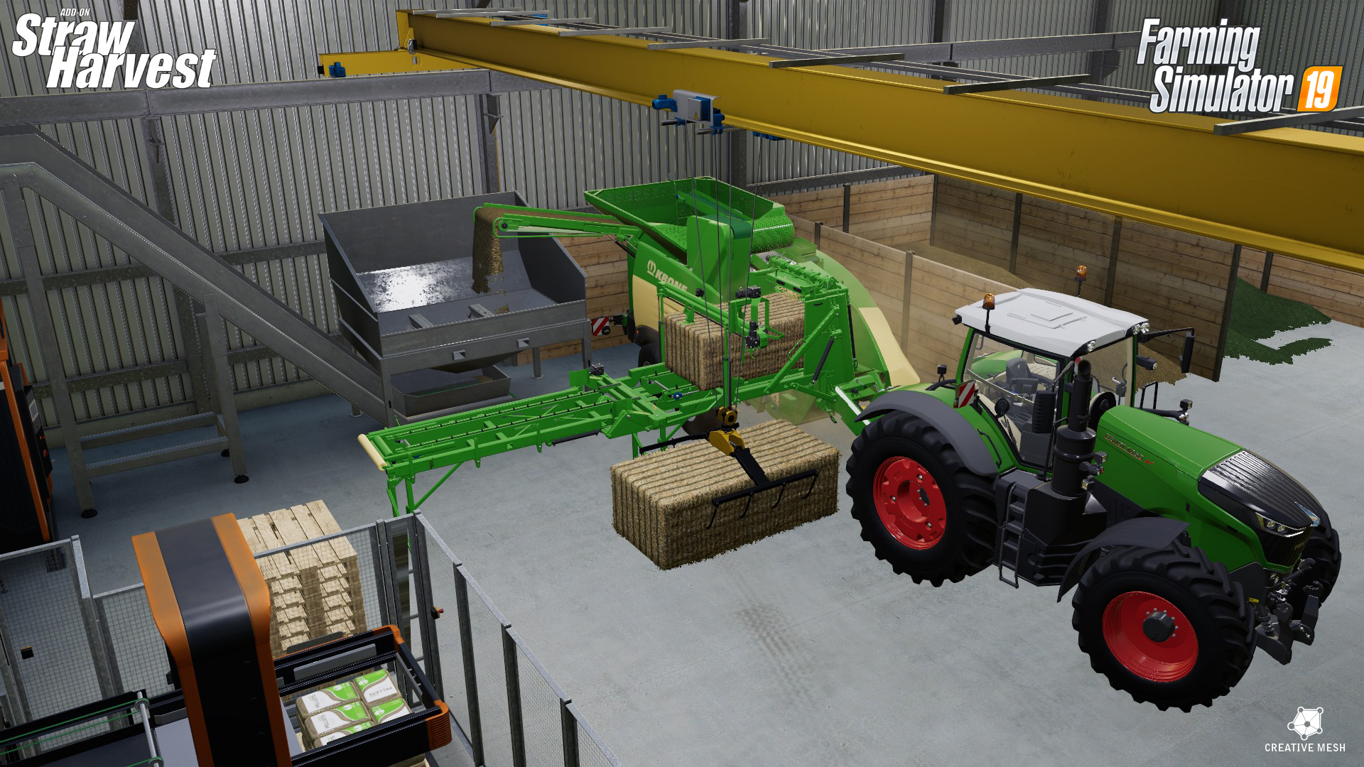 Was euch erwartet? Die umfangreiche Erweiterung dreht sich ganz um die professionelle Strohernte und Pelletierung. Selbstverständlich stellt euch Creative Mesh dazu auch die notwendigen Maschinen, Geräte und weitere Hilfsmittel zur Verfügung - darunter auch eine vielseitige Industriehalle zur Lagerung und Weiterverarbeitung. Enthalten sind zudem der weltweit erste mobile Pelletvollernter Krone Premos 5000, die Ballenpressen Krone BiGPack 1290 HDP II und Comprima V180xc und weitere Geräte.