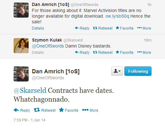 Dan Amrich ist übrigens Activisions Community Manager und bestätigt via Twitter das Entfernen von Marvel Spielen aus dem PSN-Store.
