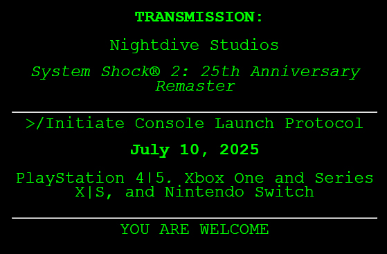 Die Nightdive Studios haben nun einen neuen Termin für das System Shock 2: 25th Anniversary Remaster auf Konsole genannt. Die PS4 & PS5 Fassungen werden am 10. Juli erscheinen. Kurzfristige Probleme hatten zu dem verschobenen Launch geführt.