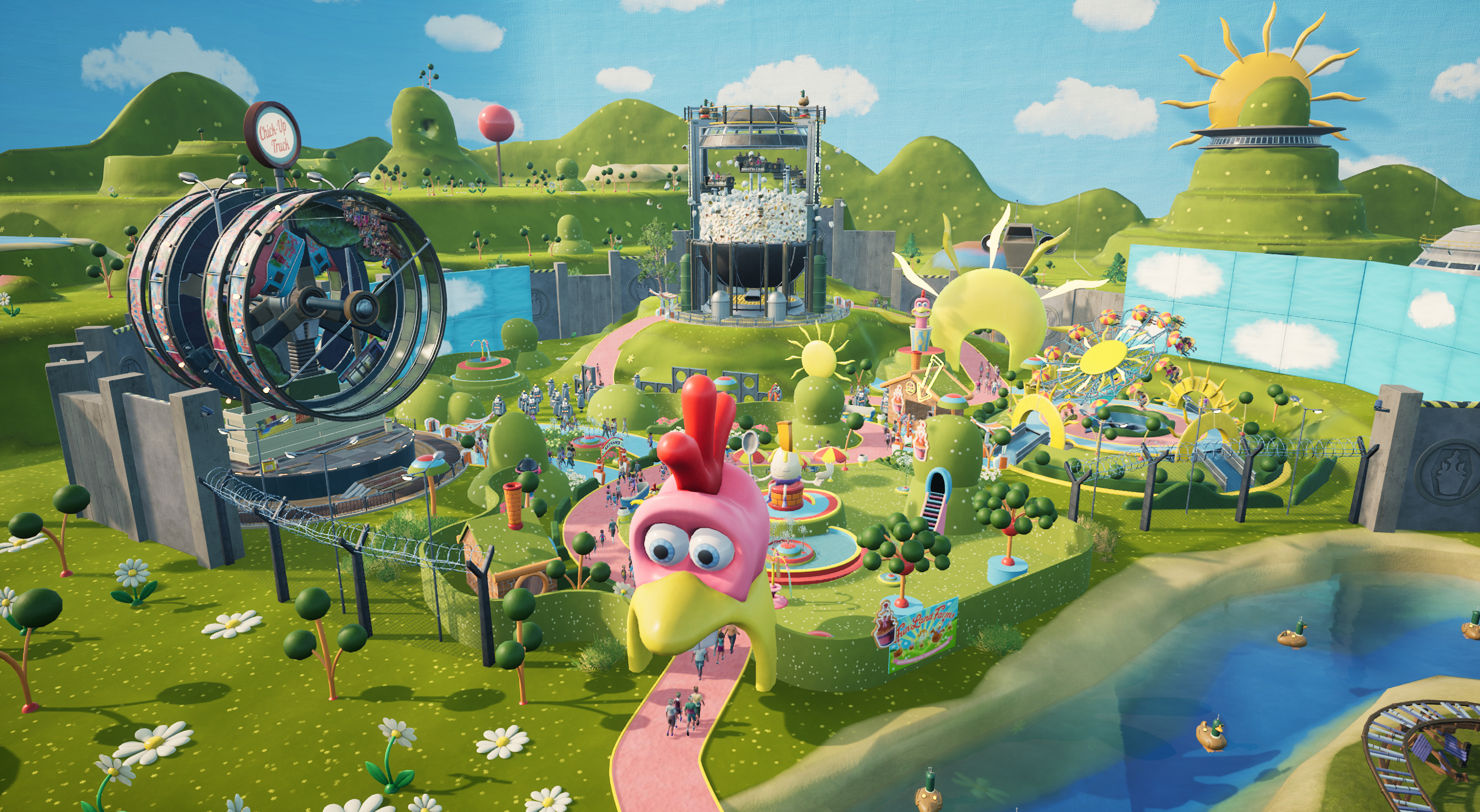 Alle Park Beyond-Spieler erhalten einen kostenlosen Chicken Run: Dawn of the Nugget Skin für die "Shinning Pendulum Flat Ride", der durch ein Update hinzugefügt wird.