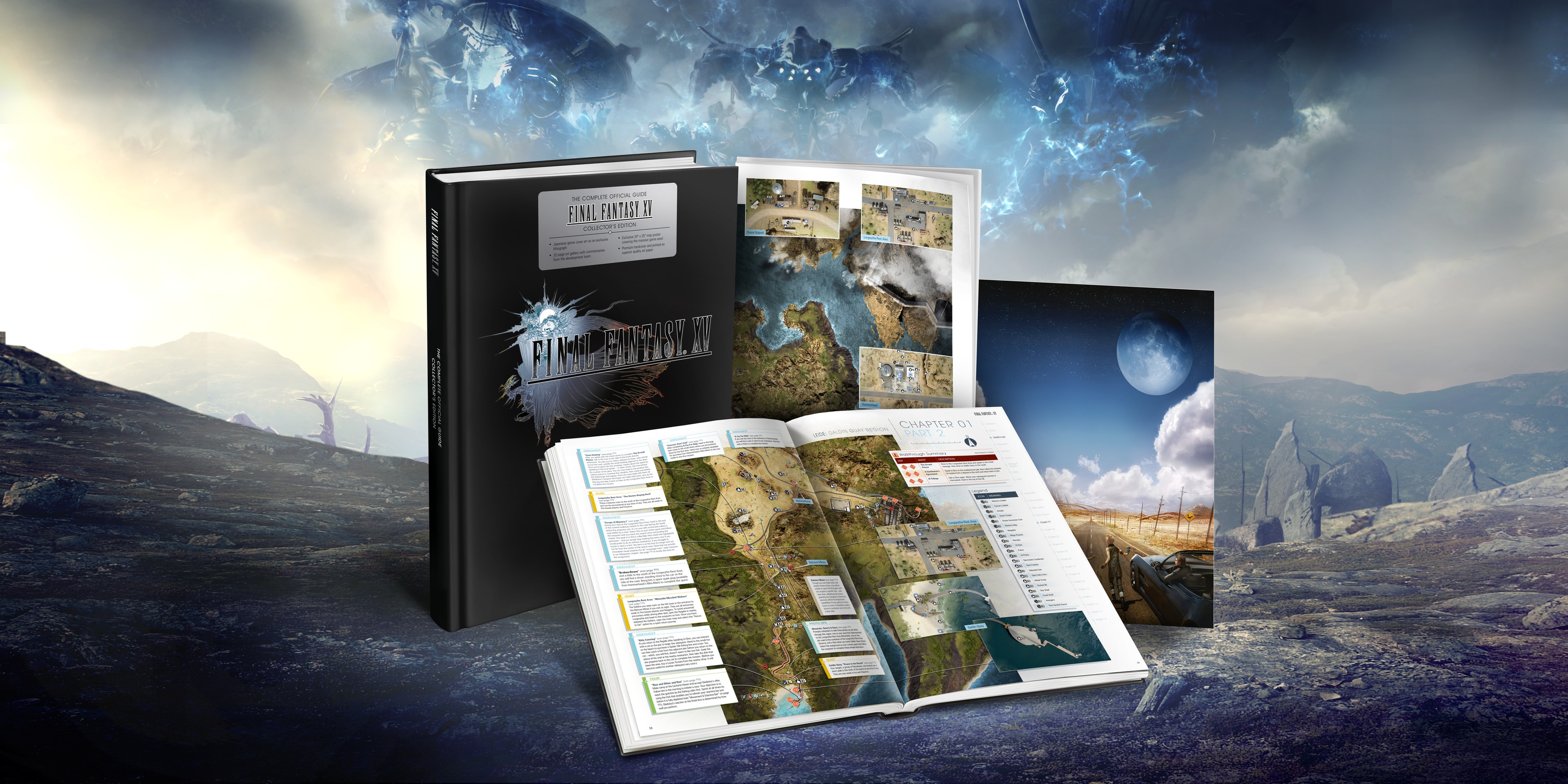 Das offizielle Lösungsbuch zu Final Fantasy XV erscheint bereits am 29. November 2016 und zwar in zwei Versionen - Standard und als Hardcover Collectors Edition. Hier ein paar Eckdaten für die Standardversion: Diese umfasst 320 Seiten und kostet 19,99€. Die CE wird dagegen zum Preis von 29,99€ angeboten, verfügt jedoch über einen zusätzlichen 32-seitigen Behind the Scenes Abschnitt, eine schöne Lithographie, ein großes Kartenposter, hochwertiger Einband und bessere Papierqualität. Wer die älteren Werke der Macher kennt, weiß, das man hier wirklich was für den Preis geboten bekommt. Ansonsten kann man sich wieder auf gewohnte Qualität der Final Fantasy-Kenner von Piggyback verlassen, beide Bücher bringen eine umfassende - spoilerfreie - Lösungshilfe mit sich, die alle Geheimnisse erklärt, übersichtlich gestaltet ist, ein Stichwortverzeichnis besitzt, Trophäenleitfaden, Tabellen für Waffen, Boni, Monster usw.