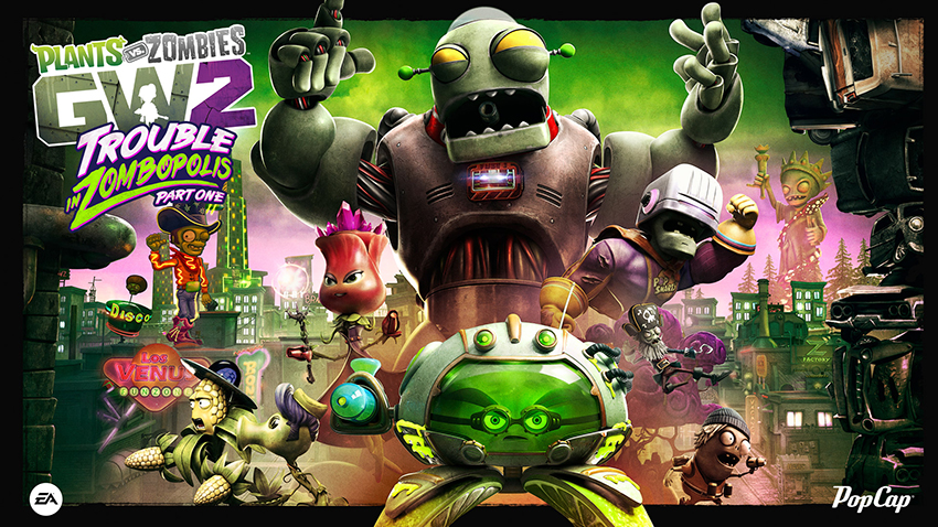 Fans von Plants vs. Zombies: Garden Warfare 2 dürfen sich auf ein neues kostenloses Inhaltsupdate im Sommer freuen. Es hört auf den Namen "Trouble in Zombopolis - Part One" und bringt eine riesige Map mit sich, zwei neue Charaktere (Breakfast Brainz und Toxic Citron), über 1200 Individualisierungsitems für die Charaktere und zahlreiche Gameplayverbesserungen.