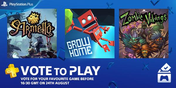 Sonys neues Vote to Play Programm startet an diesem Donnerstag. Bis zum 24. August können PlayStation Plus Abonnenten für eines von drei Spielen (Armello, Grow Home oder Zombie Vikings) abstimmen. Das Spiel mit den meisten Stimmen wird dann im September kostenfrei im Rahmen des PlayStation Plus Programms angeboten. Die restlichen Games werden immerhin rabattiert.