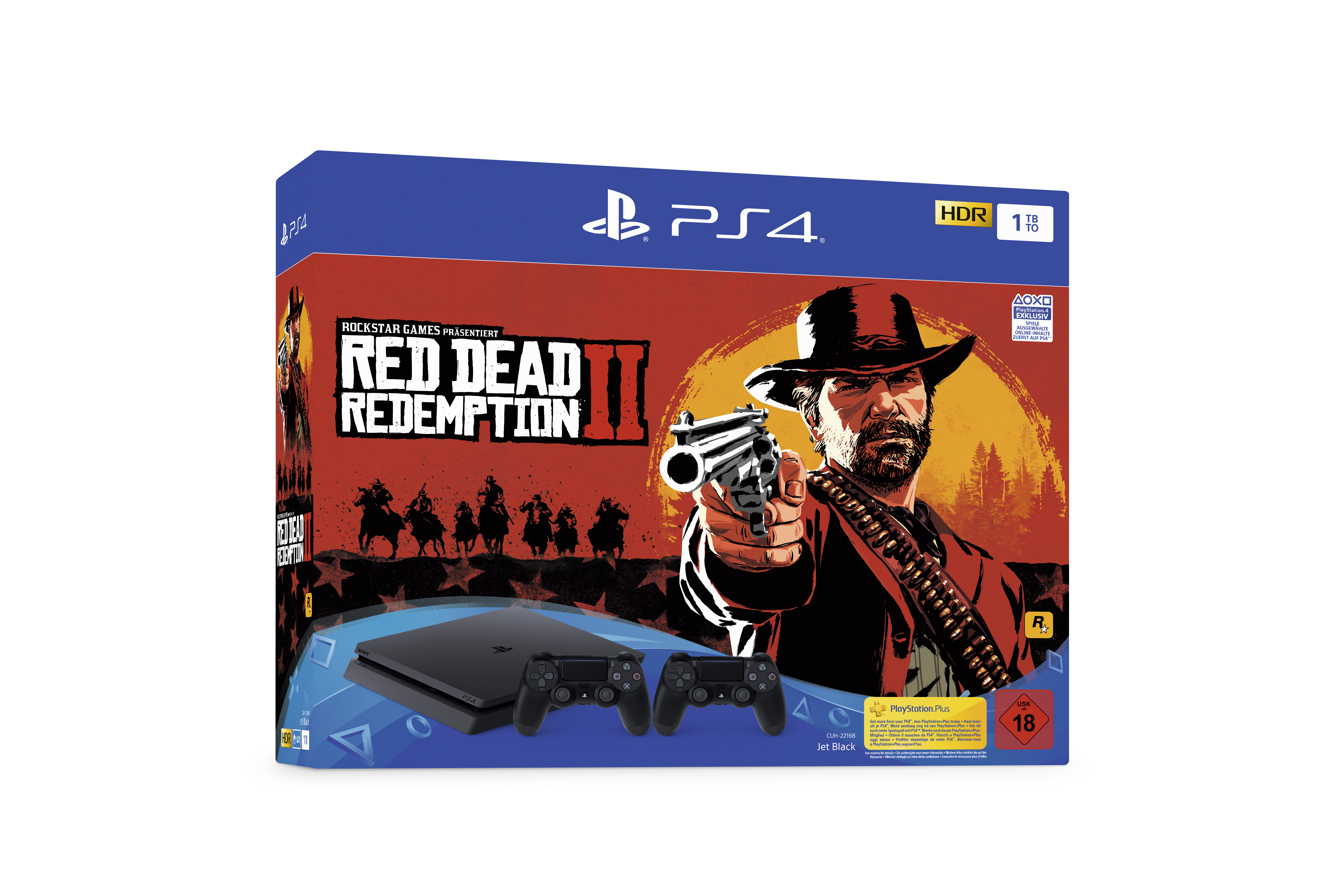 - PS4-Paket mit 1TB HDD mit zwei Dualshock 4 Wireless-Controllern: Umfasst ein Exemplar von Red Dead Redemption 2 auf Blu-ray Disc