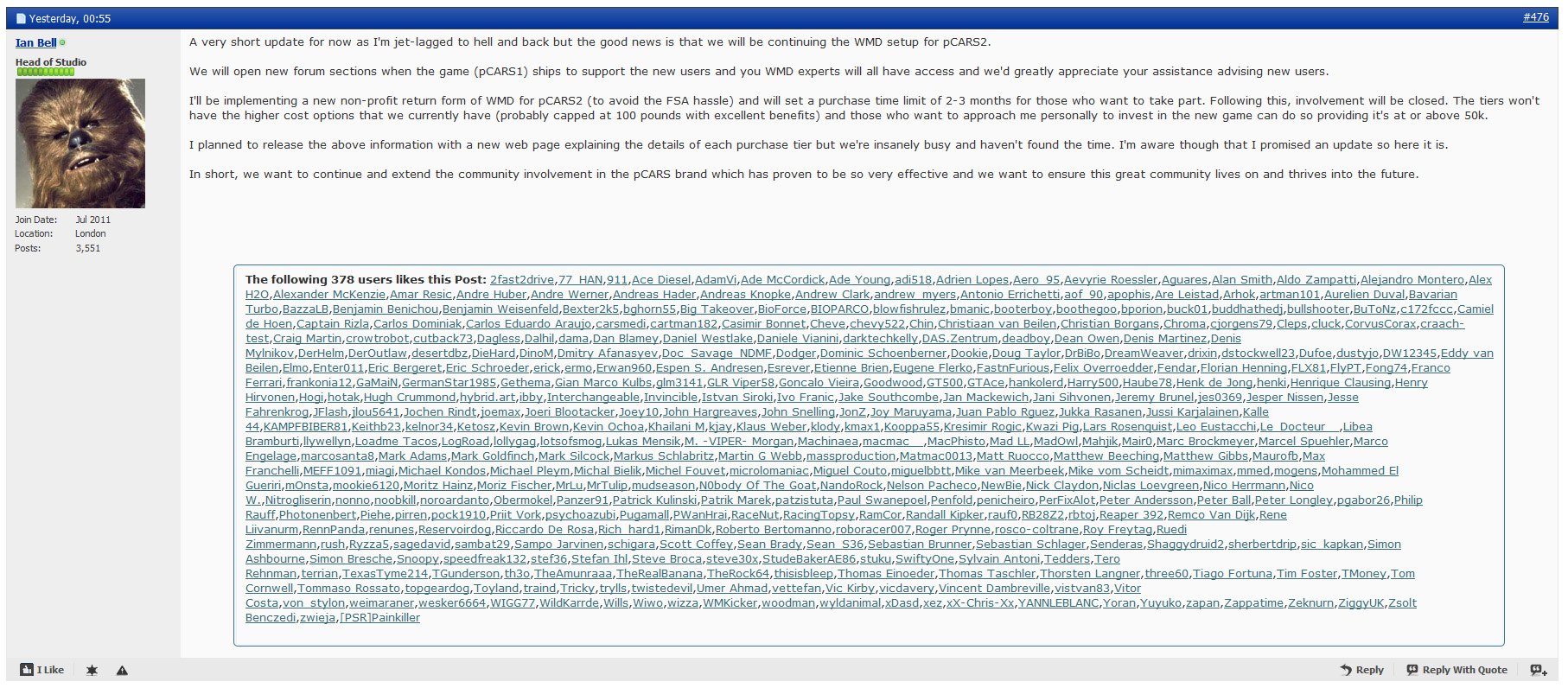 Eigentlich haben die Entwickler in diversen Nachrichten und Interviews immer wieder betont, dass Project Cars ein langfristig angelegtes Projekt sei und sich auch Wochen und Monate nach Release noch weiterentwickeln soll.