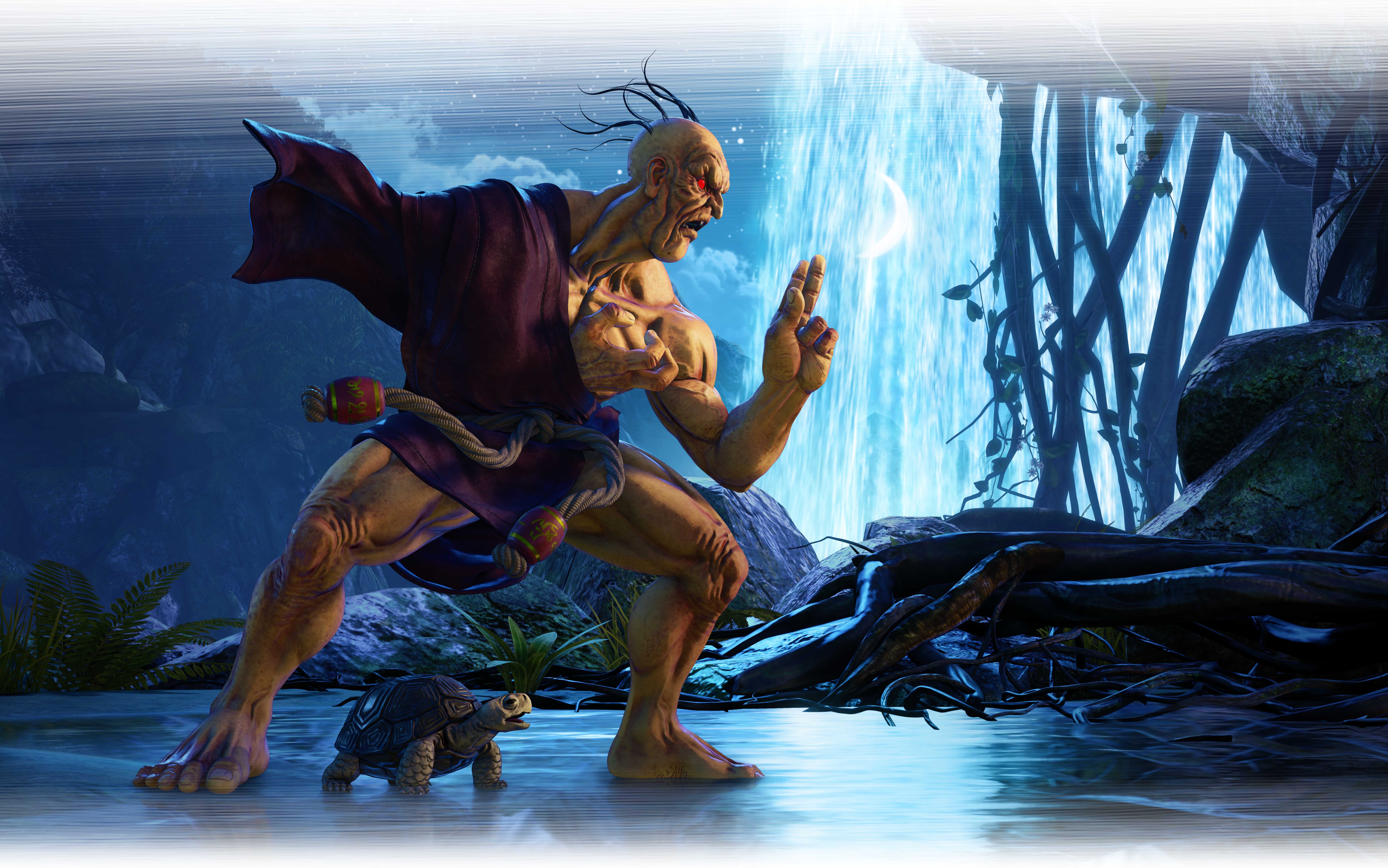 Nach einer langen Reise schließt sich Oro, der Wanderer aus Street Fighter III dem Kader in Street Fighter V an. In einer bescheidenen lila Robe von einem braunen Seilgürtel gehalten, ist Oro bereit, seinen Witz und seine Weisheit mit jedem zu teilen, der interessiert ist. Bekannt für seinen ausgewogenen Kampfstil behält er viele seiner ursprünglichen Moves bei und erweitert sein Repertoire in Street Fighter V um eine Handvoll neuer Tricks. So wird Oro zu einem immens mächtigen Kämpfer, den die Spieler meistern müssen.