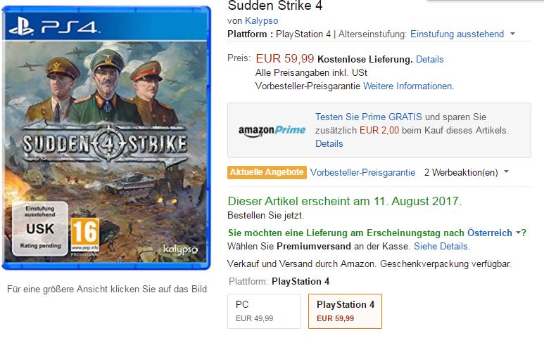 Laut der amazon Seite erscheint Sudden Strike 4 bei uns am 11.8.