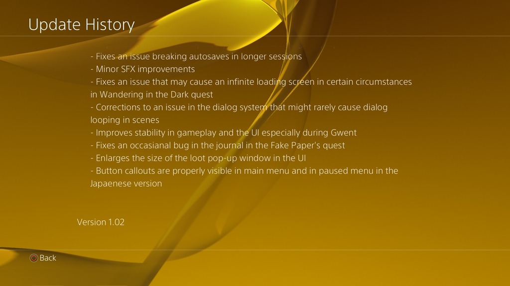 Wer aktuell The Witcher 3: Wild Hunt startet, wird einen Patch auf Version 1.03 herunterladen können. Das knapp 450MB große Update verbessert folgende Dinge: