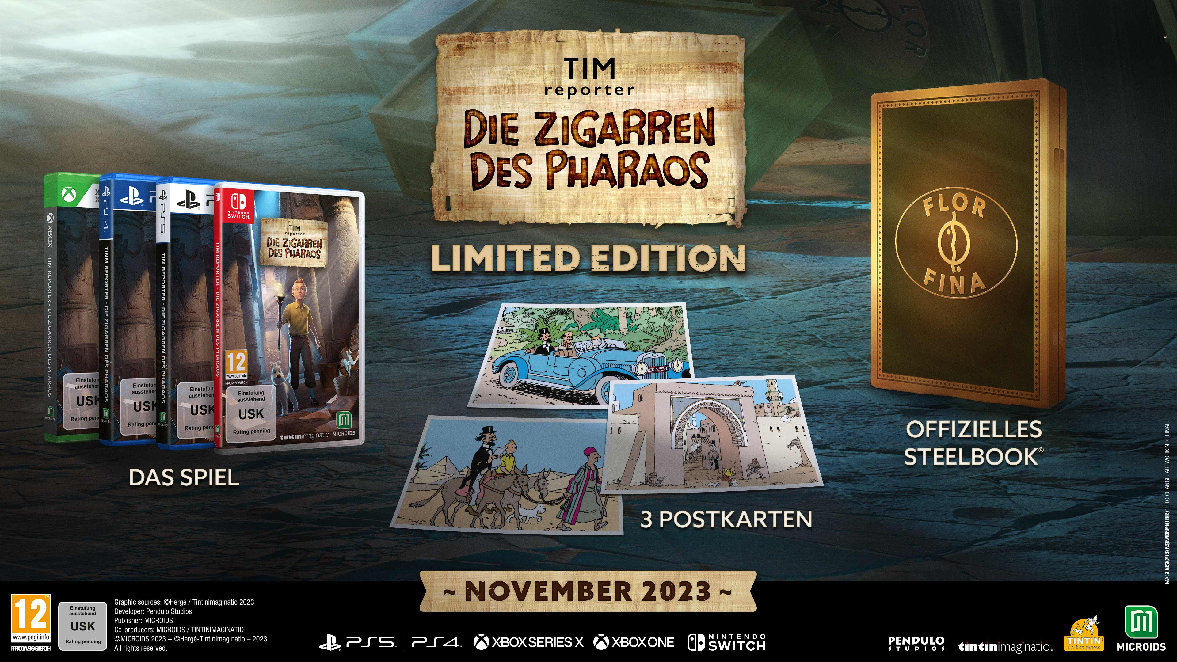 Tintinimaginatio und der französische Videospiel-Publisher Microids haben die Inhalte der Limited Edition von Tintin Reporter – Die Zigarren des Pharaos vorzustellen. Entwickelt wird das Spiel vom spanischen Studio Pendulo Studios, das bereits für seine Adventure-Spiele aus über drei Jahrzehnten bekannt ist. Das Abenteuer mit Tim und Struppi erscheint im November 2023 für die PS4 und PS5.