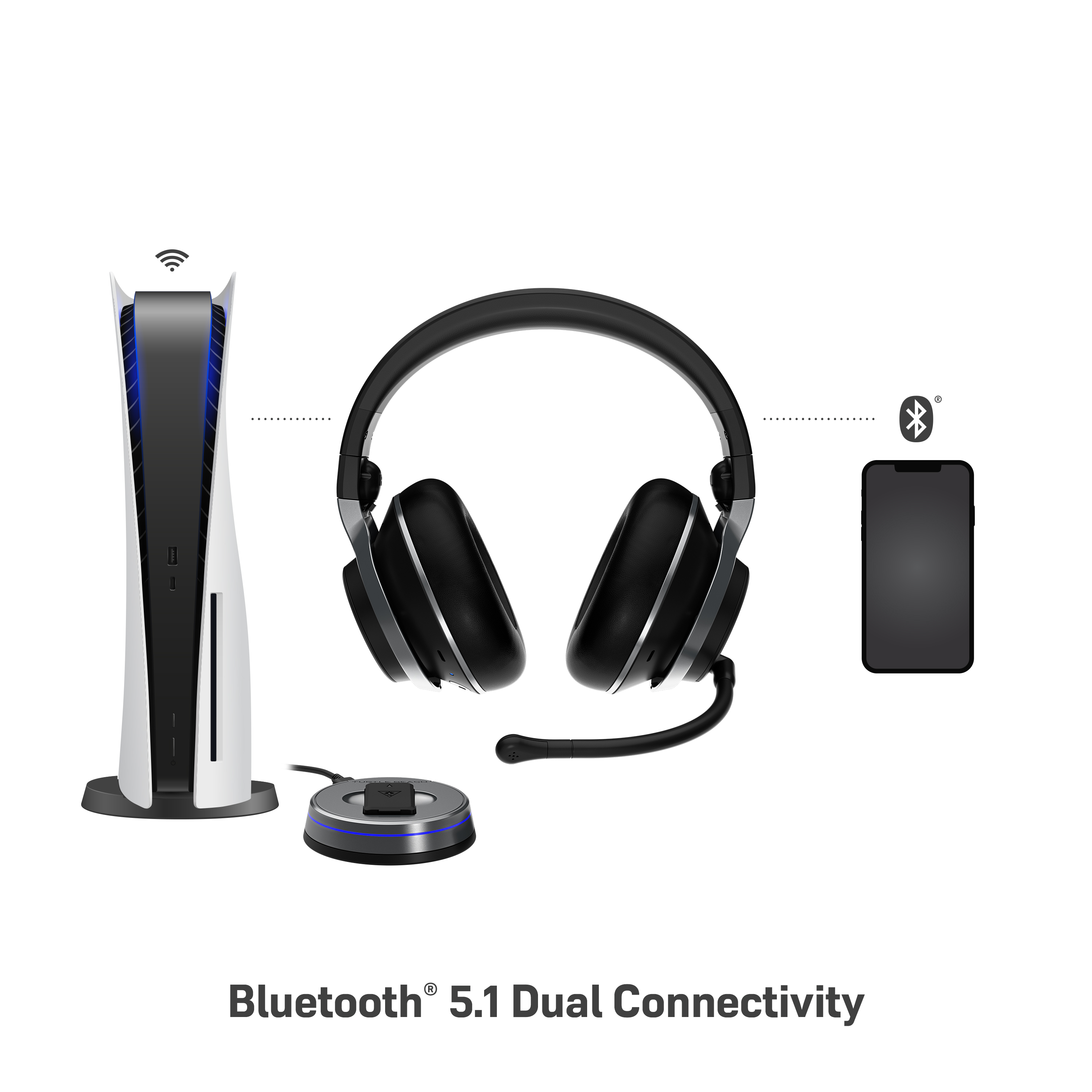 Mit Bluetooth 5.1 und der Dual-Connectivity-Technologie von Turtle Beach können Spieler auf PlayStation zu selben Zeit Musik hören, Discord nutzen oder Anrufe entgegennehmen.