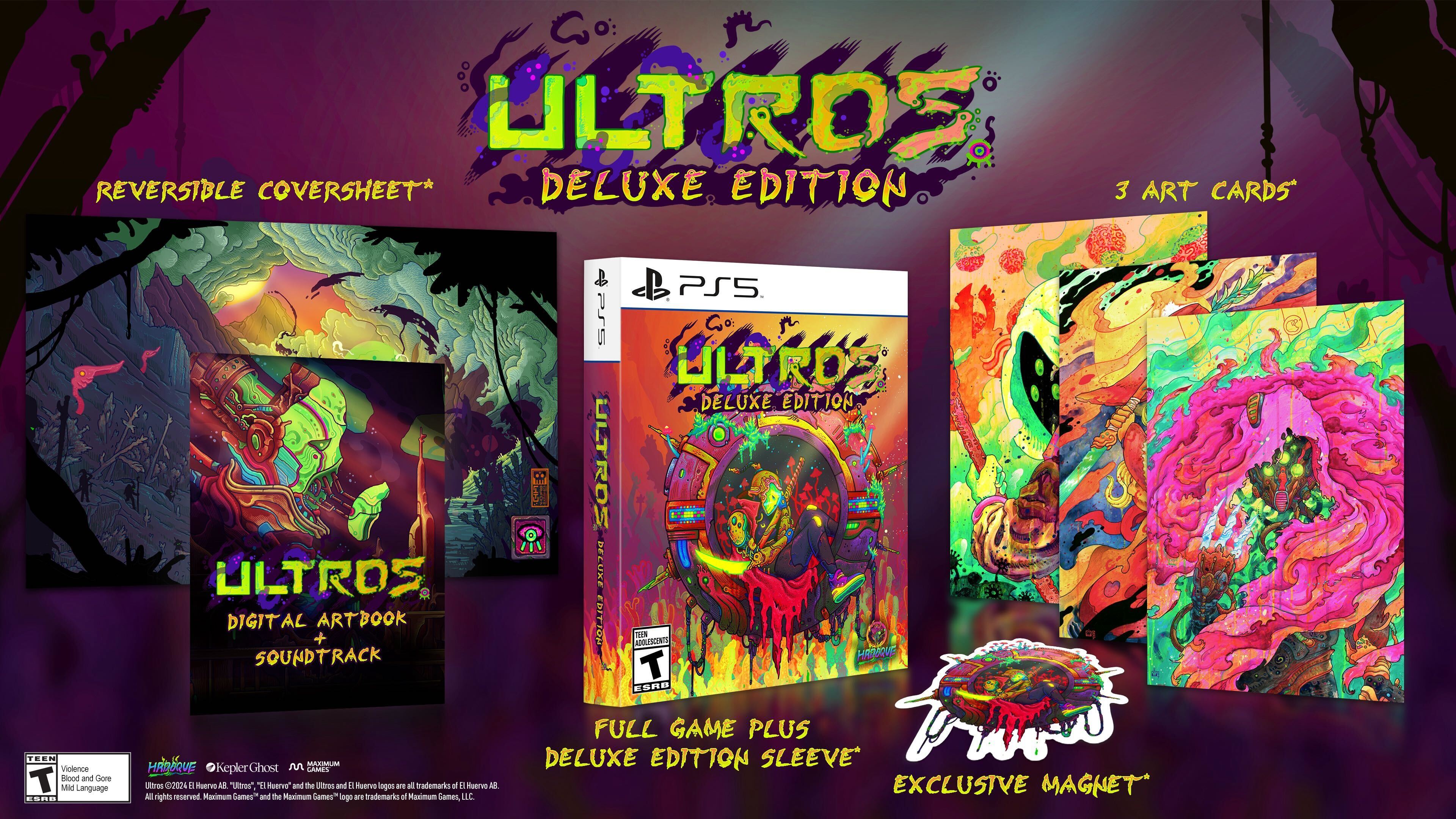 Zudem können Fans dank der Zusammenarbeit mit Maximum Games bei ausgewählten Händlern eine exklusive physische Deluxe Edition von ULTROS für die PS5 vorbestellen. Diese enthält zusätzlich drei umwerfende Art-Cards und Ouji, die Protagonistin des Spiels, als Magnet. Hinzu kommen alle Inhalte der digitalen Deluxe Edition.