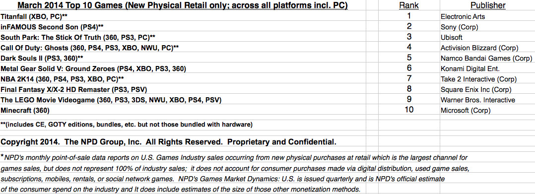 Die aktuellen Marktdaten für den Monat März in den USA sind da. Obwohl konkrete Zahlen im Fall Sony fehlen, ist erwiesen, dass Microsoft mit seiner Xbox One und dem "Systemseller" Titanfall nicht an der PS4 vorbeiziehen konnte. Mit 311.000 EInheiten reichte es doch nur zum zweiten Platz. Titanfall selbst verkaufte sich zwar besser als inFamous: Second Son, allerdings erschien Ersteres auch noch für den PC.