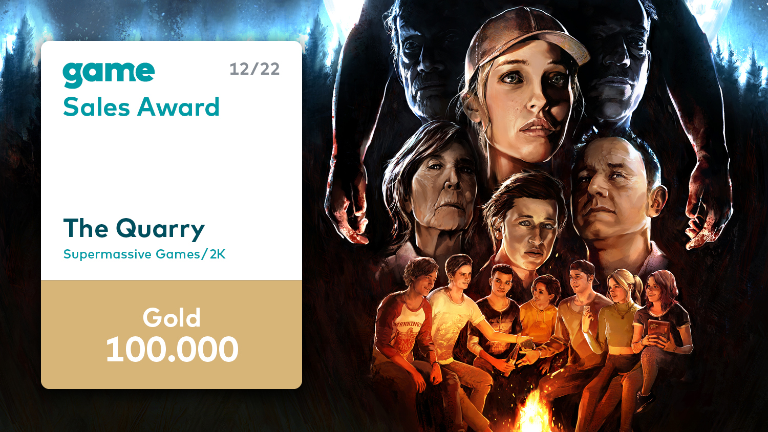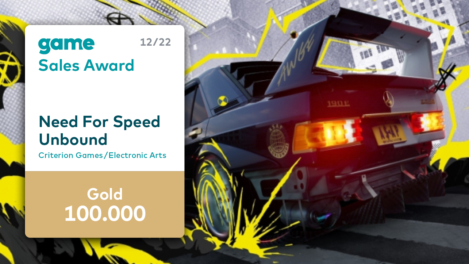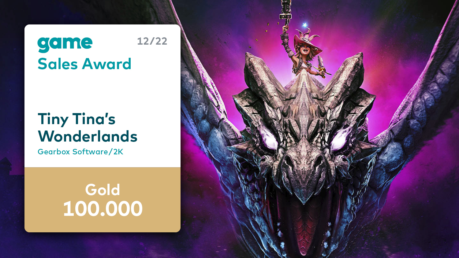 Im Dezember zeichnet der Game – Verband der deutschen Games-Branche sechs Spiele mit einem Game Sales Award aus. Für über 200.000 verkaufte Titel erhalten das Action-Adventure „God of War Ragnarök“ und das Formel-1-Rennspiel „F1 22“ jeweils den Game Sales Award in Platin. Mit „Need for Speed Unbound“ bekommt ein weiteres Rennspiel eine Trophäe für besondere Verkaufserfolge: Der EA-Titel hat sich über 100.000-mal verkauft und erhält somit einen Gold-Award. Den Game Sales Award in Gold erhalten auch gleich drei Titel des Publishers 2K: Die Basketball-Simulation „NBA 2K23“, der Survival-Horror „The Quarry“ und das Action-Spiel „Tiny Tina´s Wonderlands“ haben ebenfalls die Marke von 100.000 Verkäufen geknackt.