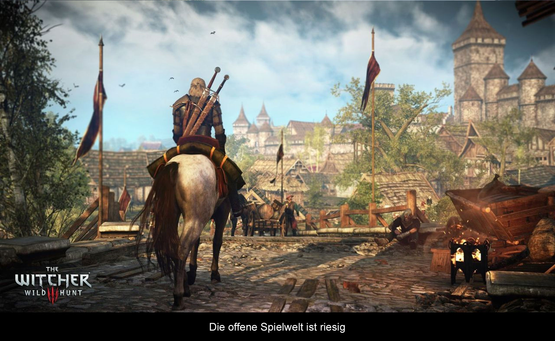 Die Demo lief auf einem PC und sah dementsprechend toll aus. Vor allem die Anfangsszenen waren beeindruckend. Denn die dicht besiedelte Stadt strotzte vor Leben und in jeder Gasse gab es etwas zu entdecken. An einer Ecke standen Prostituierte und an einer anderen spielten Kinder. Besonders beeindruckend war aber die Weitsicht, welche gefühlt bis ans Ende der Welt reichte. Laut den Entwicklern soll man auch alles erreichen können, was man mit dem Auge erblicken kann. Um dem Spieler bei der Größe aber nicht mit den Reisen zu langweilen, gibt es auch die Möglichkeit ein Schnellreisesystem zu benutzen, was an Wegschildern aktiviert werden kann. Dann wird man an den gewünschten Punkt der Karte geschickt. Komischerweise hatte die PC Demo aber mit kleineren Minirucklern (Nachladeruckler?) in der Stadt und leichtem Tearing zu kämpfen. In den etwas weniger dicht besiedelten Gebieten verschwanden die Probleme aber wieder. Wie das Spiel auf den Konsolen aussehen wird, kann man aktuell noch nicht sagen. Jedoch darf man wohl mit kleineren Abstrichen sorgen, denn die Entwickler betonten, dass „The Witcher 3“ von der Geschichte lebt und man grafisch keine Enttäuschung zu sehen bekommt. Wahrscheinlich wird am ehesten die Weitsicht heruntergeschraubt, aber selbst dann bleibt „The Witcher 3“ grafisch ein bahnbrechend tolles Spiel mit unsagbar vielen Details und einer lebendigen Welt. Toll ist scheinbar auch, dass es während des Spiels keine Ladezeiten gibt, nicht mal beim Betreten eines Hauses. Nur beim Benutzen des Schnellreisesystems gab es einen kurzen Ladebildschirm zu sehen.