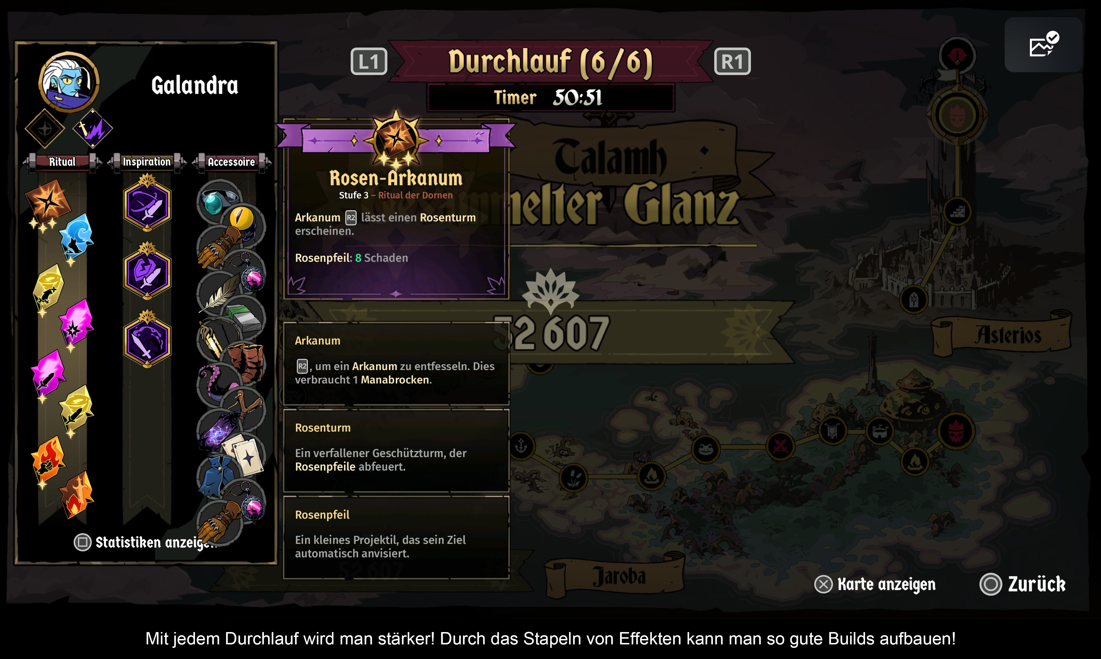 Der Ausgangspunkt ist immer Uchawis Heiligtum. Von dort aus bricht man zu einem Rachefeldzug auf und muss mehrere Länder durchqueren, bis man Azra an der Spitze seines Palasts erreicht. Dabei steht die Wiederspielbarkeit an oberster Stelle, was für ein Rogue-like von Vorteil ist. Immer wieder erreicht man Weggabelungen, an denen man sich entscheiden muss, in welche Richtung es weitergeht. Doch auch Geheimnisse, Puzzles und Nebenquests warten auf die Rebellen. Logischerweise beendet man das Spiel nicht beim ersten Versuch. Doch der nächste Lauf muss nicht gleich verlaufen, denn einige Dinge ändern sich später, weil man Einfluss auf die Geschichte von Talahm genommen hat. Es bleibt auf jeden Fall spannend, auch wenn man das Finale bereits gesehen hat. Glücklicherweise respektiert das Spiel die Zeit der Spieler. Freigeschaltete Vorteile gelten für alle Klassen und man muss nicht für jede Figur alles von neuem erspielen. Ab und zu trifft man zudem auf mächtige Bossgegner, die deutlich stärker sind. Wenn man diese besiegt, gibt es auch größere Belohnungen! Aber auch bei fliegenden Händlern kann man später Zeug ergattern. Je länger man spielt, desto stärker wird man! Im Vergleich zu anderen aktuellen Action-Spielen wie „Marvel Cosmic Invasion“ gibt es große Unterschiede. „Absolum“ bietet ein wesentlich eleganteres Gameplay, mehr Wiederspielwert und somit auch mehr Abwechslungsreichtum und Komplexität.