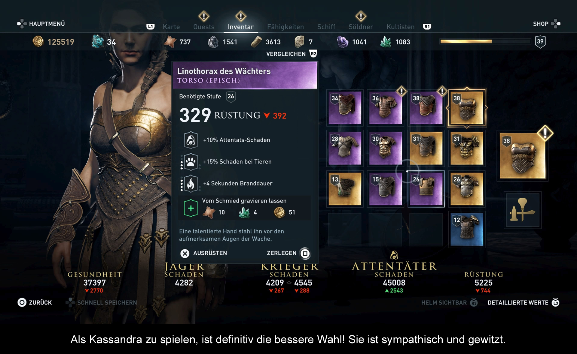 Kollege Dimi bringt es eigentlich auf den Punkt: Für sein Geld bekommt man ein vollgepacktes Videospiel geboten. Der Umfang ist einfach gigantisch und dank Ubisofts Update-Strategie darf man auch in den nächsten Monaten (selbst als Nicht Season Pass-Besitzer) mit vielen neuen Aufgaben und Items rechnen. Natürlich ist nicht alles Gold was glänzt, auf viele Sachen hätte man auch verzichten können – gerade da man zwangsläufig Nebentätigkeiten verrichten muss, um vor allem gegen Ende hin, weiter hochzuleveln. Doch und das muss man den Entwicklern zu Gute halten, dank der runden Steuerung spielt sich „Odyssey“ einfach genial. Im Gegensatz zum neuen „Red Dead Redemption“ – hier ist die Steuerung griffig und geht gut von der Hand. Und das merkt man eben auch: Da denkt man sich, na diese eine Insel möchte ich noch erkunden, oder den Söldner möchte ich noch platt machen, diese Schlacht noch schlagen, dieses Schiff noch entern. Und bevor man sich umsieht, hat man wieder zwei Stunden in das Spiel versenkt. Die Geschichte ist übrigens interessant, aber dennoch zu weitläufig verteilt – die Nebenmissionen mögen zwar ausgearbeiteter sein als noch in „Origins“, trotzdem aber größtenteils nicht sonderlich interessant. Das Kampfsystem gleicht nun mehr einem Action-RPG und die Schifffahrt macht mehr Laune (und nimmt einen größeren Anteil ein) als noch im Vorgänger bzw. in „Black Flag“. Man merkt, dass es sich hierbei um eine konsequente Weiterentwicklung handelt – die lediglich nicht mehr viel mit den Ursprüngen der Serie zu tun hat. Wer also in eine Welt voller Sandalen und Mythen eintauchen will, ist hier goldrichtig, es erwarten den Spieler viele Freiheiten und eine Welt voller Abenteuer. Ach und bevor ich es vergesse: Auf der PS4 Pro sieht das Spiel noch einen Zacken besser aus, aber – und das finde ich extrem nervig, es ploppen viele Details erst recht spät ins Bild. Dafür gibt es in den Städten jedoch nicht so viele Probleme mit der an sich stabilen Framerate. Zumindest kann man hier auch bedenkenlos auf der normalen PS4 spielen.
