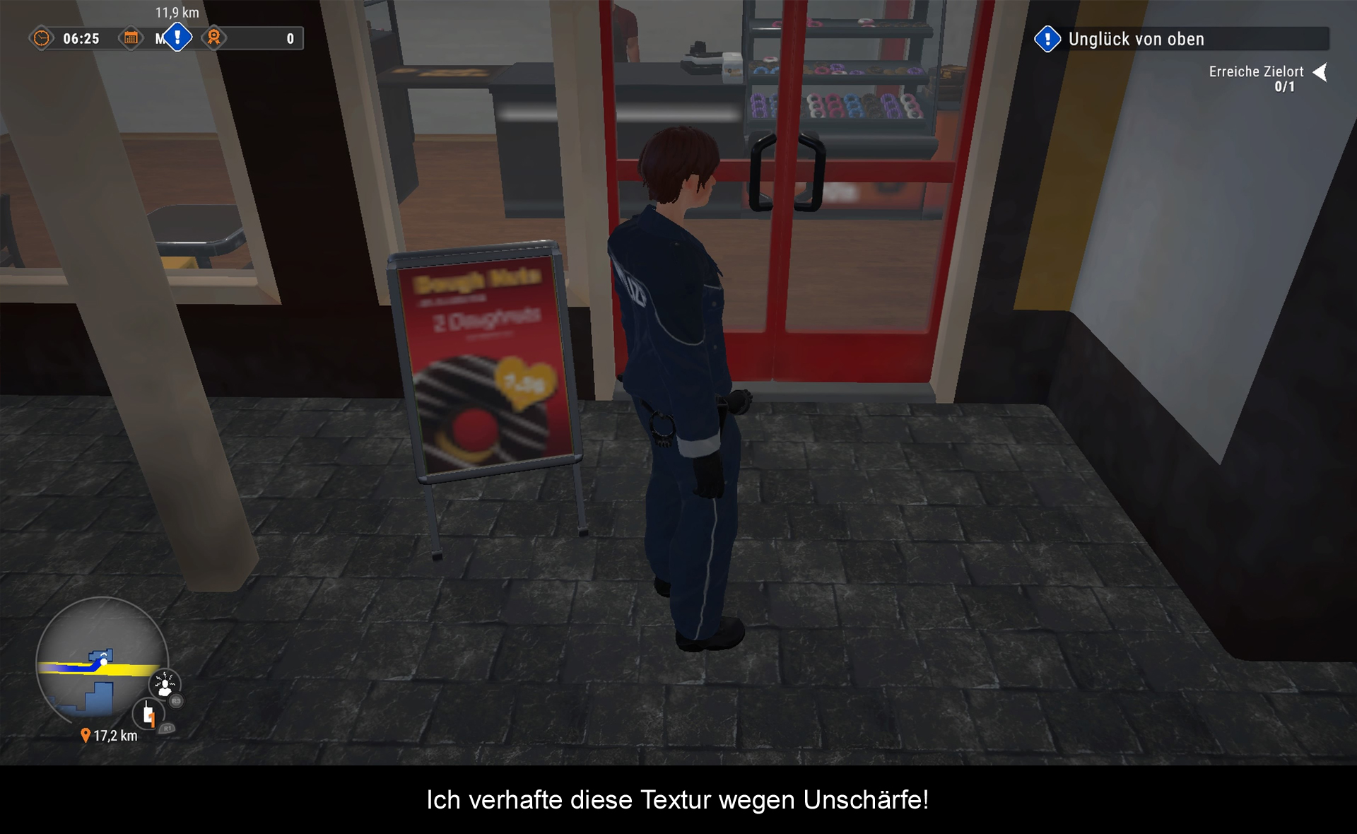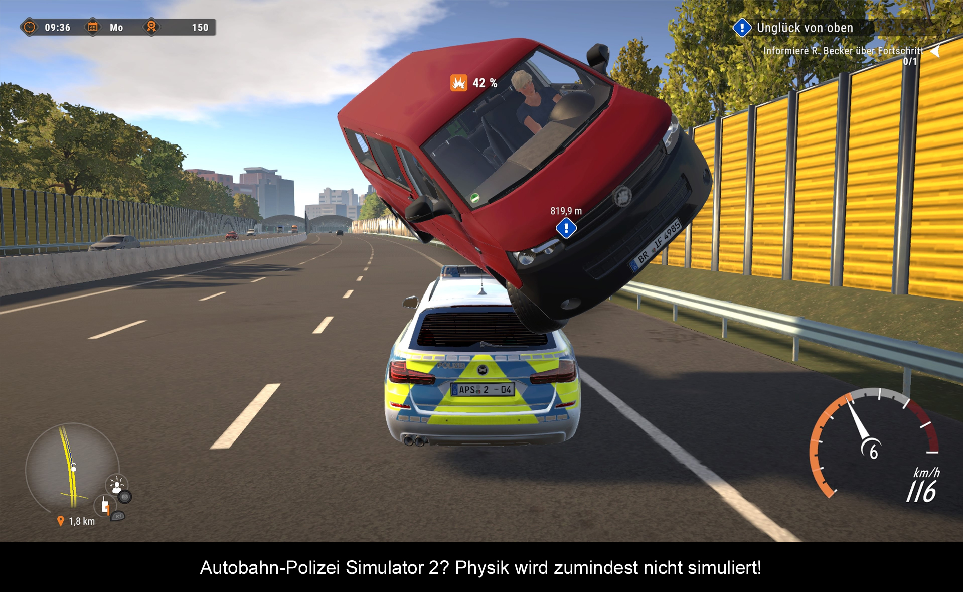 Jedoch fangen die vielen Macken des Spiels schnell an zu nerven. Allen voran die unterirdische Benutzeroberfläche. Die Karte ist beispielsweise viel zu klein und lässt sich nicht vergrößern. Das eigene Icon muss man darauf erst einmal finden und dann darf man auch noch raten, welcher Schnellreisepunkt auf welcher Fahrbahnrichtung liegt. Und gerade die will man später oft nutzen, da man sonst die langweiligen Autobahnfahrten ertragen muss. Doch es geht noch weiter. Am Einsatzort gelang es mir nicht, den Kofferraum zu schließen, weil das passende Icon nicht angezeigt wurde. Oder anfangs unterlief mir der Fehler, die Sirene nicht rechtzeitig abzustellen. Die ganze Zeit am Einsatzort plärrte dann das Tatütata aus den Boxen. Stieg man erneut ins Auto, konnte man nur die Mission abbrechen oder weiterspielen.