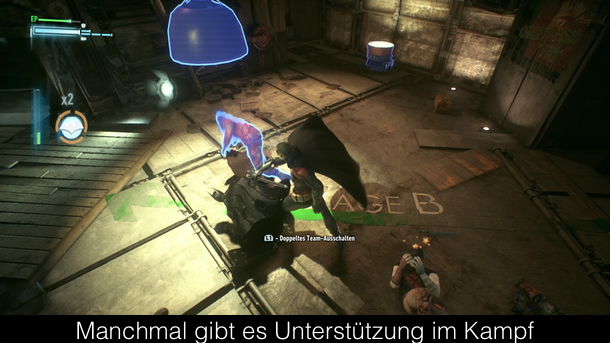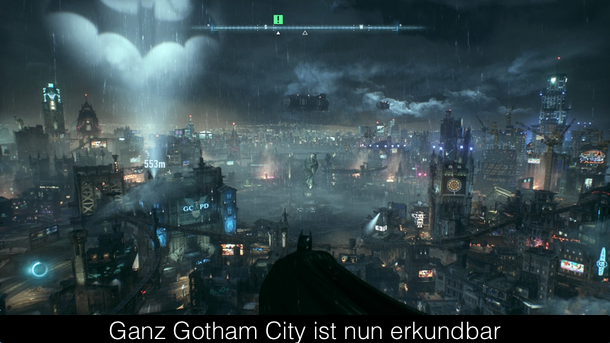 Da in Batman: Arkham Knight das Spielgeschehen in ganz Gotham City stattfindet, reicht es nun nicht mehr sich zu Fuß oder durch die Luft gleitend fortzubewegen, weswegen Rocksteady das Batmobil endlich ins Spielgeschehen integriert hat. Auf Knopfdruck könnt ihr es herbeirufen und so durch die Straßen von Gotham City heizen. Dabei stehen euch zwei Modi zur Verfügung. Einmal ein normaler Fahrmodus, in dem ihr ziemlich schnell unterwegs seid und in Verfolgungsjagden die Gegner entweder von der Straße drängt oder sie mit ein paar gut gezielten Lenkraketen ausschaltet. Manchmal hat man es aber nicht nur mit ein paar gewöhnlichen Straßenganoven zu tun, sondern mit den Schergen von Scarecrow, die gerne auf unterschiedliche Panzer zurückgreifen. Hier könnt ihr in den Kampfmodus schalten, der euch bessere Steuerungsmöglichkeiten auf engem Raum bietet und indem ihr volle Kontrolle über euer Waffenarsenal habt. Auf dem Papier ist das Batmobil also eine willkommene Ergänzung, doch leider gibt es ein paar gravierende Probleme. So ist die Steuerung des Batmobils im normalen Modus unheimlich schwammig und nur mit viel Geduld gewöhnt man sich daran. Die Kampfszenen mit anderen Panzern sind auch nicht sonderlich spannend und laufen immer nach Schema F ab. Leider fand Rocksteady das Batmobil so toll, dass man sich dazu entschied dieses in so vielen Szenen wie nur möglich einzusetzen. Zum Teil auch in wirklich absurden Gameplayabschnitten, wo man ganze Plattformrätsel mit dem Batmobil lösen muss und zufälligerweise hat der Riddler seine Rätsel alle aufs Batmobil ausgelegt. Hier wäre weniger deutlich mehr gewesen, wenn dafür die Qualität angehoben worden wäre. Immerhin gibt es ansonsten das bekannte Gameplay aus den Batman Spielen mit dem ausgefeilten Combosystem. Eine Neuerung in diesem sind Doppelmoves, die ihr ausführen könnt, wenn euch jemand im Kampf zur Seite steht. Sei es Catwoman, Robin oder jemand anderes. Die geben dem Spiel noch mal etwas Abwechslung, aber kommen im Spiel leider viel, viel zu kurz. Des Weiteren gibt es die vielen Gadgets, fast schon zu vielen. Denn vor allem zu Beginn ist man völlig überfordert, weil man die meisten Gadgets aus dem Vorgänger schon besitzt und so wirft das Spiel einen ins kalte Wasser. Kaum etwas wird erklärt und so muss man teilweise erstmal überlegen, welche Taste man drücken soll. Denn die meisten Tasten sind doppelt und dreifach belegt und je nach Gadget auch gerne mal mit völlig anderem Resultat. Ansonsten gibt es für Fans des dunklen Ritters viel zu tun mit zahlreichen, zum Teil durchaus interessanten, Nebenquests und einigen Collectibles und den schier nie enden wollenden Riddler-Aufgaben.