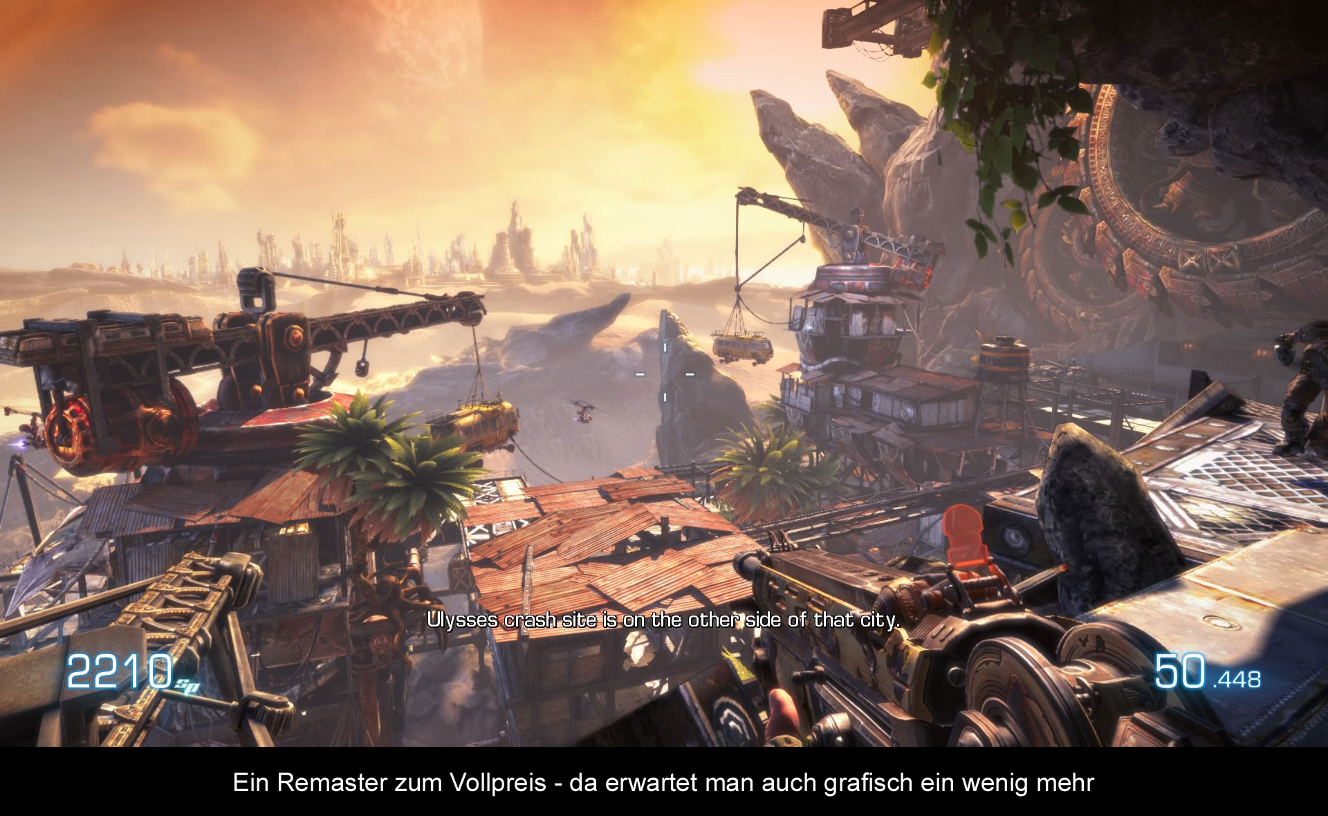 Als ich nämlich hörte, dass das Remaster zum Preis von 50€ angeboten wird, habe ich zunächst eine umfangreiche Portierung auf die Unreal Engine 4 erwartet, und zwar komplett mit neuen Effekten und vielen neuen Inhalten. Schnell zog jedoch Ernüchterung ein, als ich feststellte, dass dies gar nicht der Fall war. Zwar ist Bulletstorm trotz seines Alters kein hässliches Spiel, aber angesichts des hohen Preises, hätte ich mir doch etwas mehr von diesem Remaster erhofft. Immerhin läuft es mit stabilen 60fps, was vor allem dem rasanten Gameplay zugutekommt. Und Besitzer einer PS4 Pro und eines passenden UltraHD-Fernsehers dürften sich zudem auf ein Spielerlebnis in 4K freuen. Was das Art-Design angeht, bewegt sich Bulletstorm zwischen Himmel und Hölle. Während die Umgebungen meist absolut fantastisch aussehen – vor allem wenn es zu großen Setpieces kommt – sehen die Hauptcharaktere immer noch wie lieblose Fleischklöpse aus, was schon damals ein Markenzeichen von Spielen der Unreal Engine 3 war. Ganz klar ein Design, mit dem ich mich niemals anfreunden werde. Nichts zu meckern gibt es hingegen beim Sound, der neben guten Synchronsprechern auch einen epischen Orchester-Soundtrack umfasst, dessen musikalische Qualität mich sehr überrascht hat.