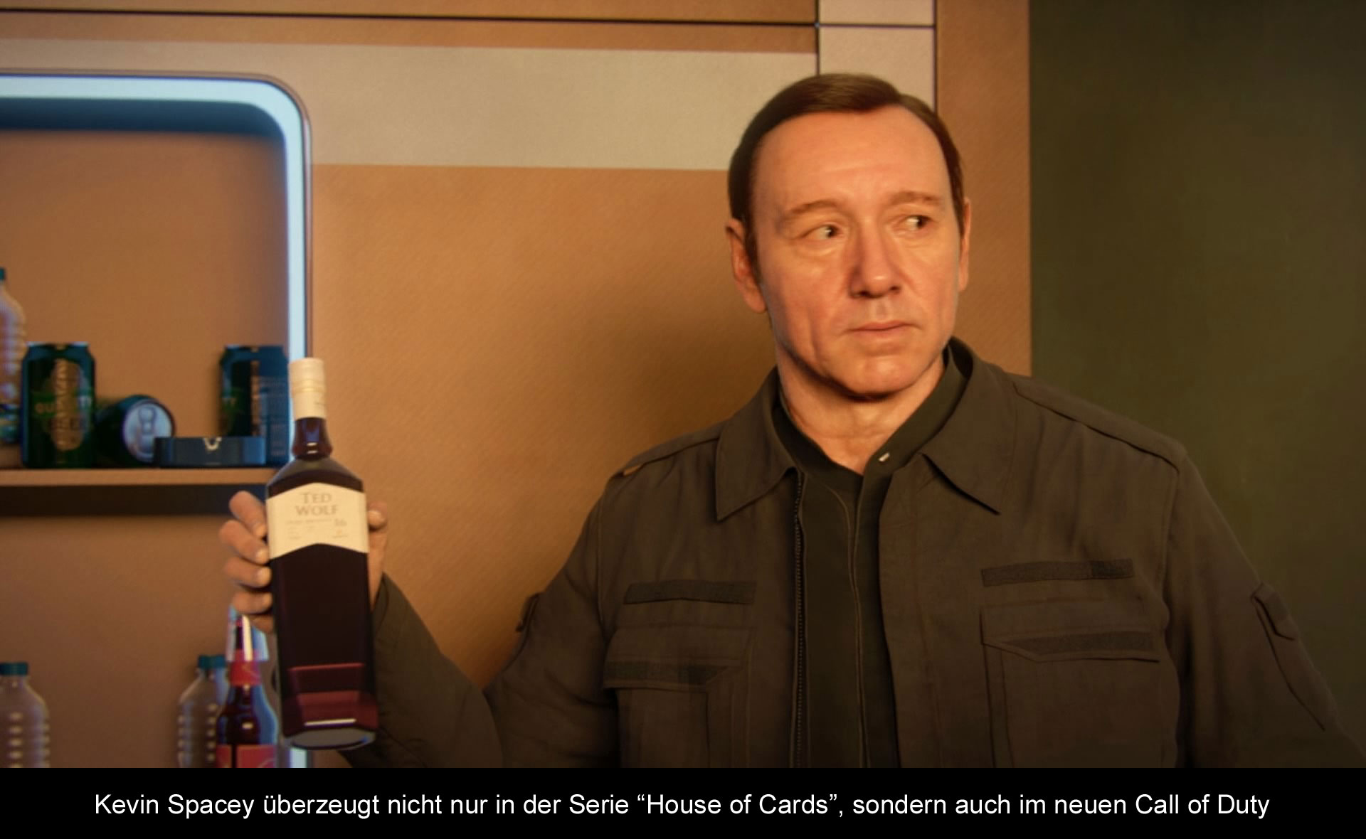 Preise für die schönsten Spiele hat Call of Duty sicher noch nie bekommen. Dafür lief es aber immer mit stabilen 60 Bildern pro Sekunde (Anm. d. R.: Na das stimmt aber nicht ganz, auf der PS3 liefen die wenigstens Titel mit stabilen 60FPS), was bei Shootern nicht unerheblich ist. Überraschenderweise läuft „Call of Duty: Advanced Warfare“ aber nicht nur mit 60 Bildern pro Sekunde, sondern sieht dabei auch noch verdammt gut aus. Vor allem die Charaktere sehen unheimlich real aus und auch die Level wissen mit weitläufigeren und abwechslungsreicheren Arealen zu überzeugen. In jeder Mission bekommt man andere Dinge zu sehen und auch die Mehrspielerkarten sind hübsch anzusehen. Es sei jedoch angemerkt, dass in der Kampagne die Bildrate nicht immer gehalten werden kann. In Situationen mit viel Action kann sie schon etwas in die Knie gehen. Das ist jedoch so marginal, dass es kaum auffällt bzw. stört. Online bekommt man dann aber nahezu bombenfeste 60 Bilder pro Sekunde und das ohne Aliasing, Tearing oder andere nervige Grafikartefakte. Musikalisch reißt sich das Spiel zwar kein Bein aus, aber das Spielgeschehen wird immer passend unterstützt. Selbst die Synchronsprecher machen ihre Sache durchaus überzeugend. Vor allem Kevin Spacey in der englischen Version. In der deutschen Version mangelt es da leider etwas an der Lippensynchronität.