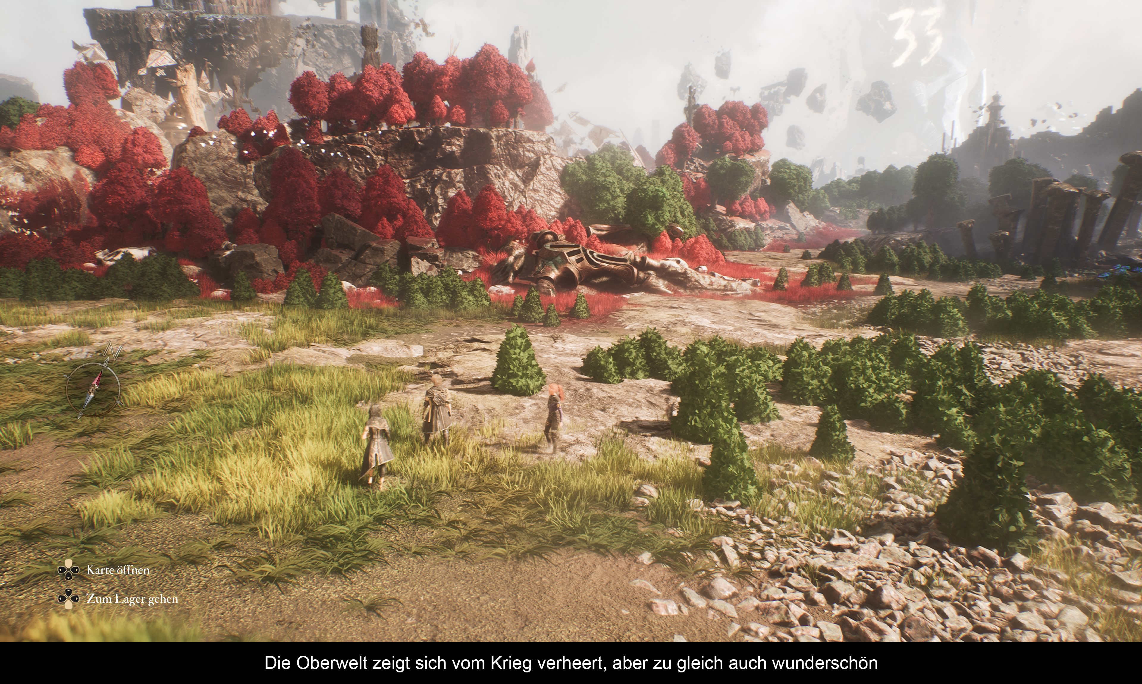 Später erkundet man eine riesige Oberwelt, die viel Raum für Abenteuer bietet. Hier kann man Kämpfe bestreiten, ein Lager aufschlagen und verborgene Geheimnisse entdecken. Zudem lassen sich von dort aus zahlreichen Levels, inklusive optionaler Dungeons, betreten. Oftmals fühlt man sich in der verwüsteten und vergessenen Welt einsam und einige Umgebungen wirken besonders düster und bedrückend. In den einzelnen Levels muss man sich selbst zurechtfinden, da auf eine Kartenfunktion verzichtet wurde. Die meisten Dungeons sind recht geradlinig gestaltet, doch dabei können leicht Geheimnisse übersehen werden. Zum Glück ermöglichen die Expeditions-Flaggen neben einer Atempause auch eine Schnellreise, sodass man flexibel zwischen den Bereichen hin- und herspringen kann.