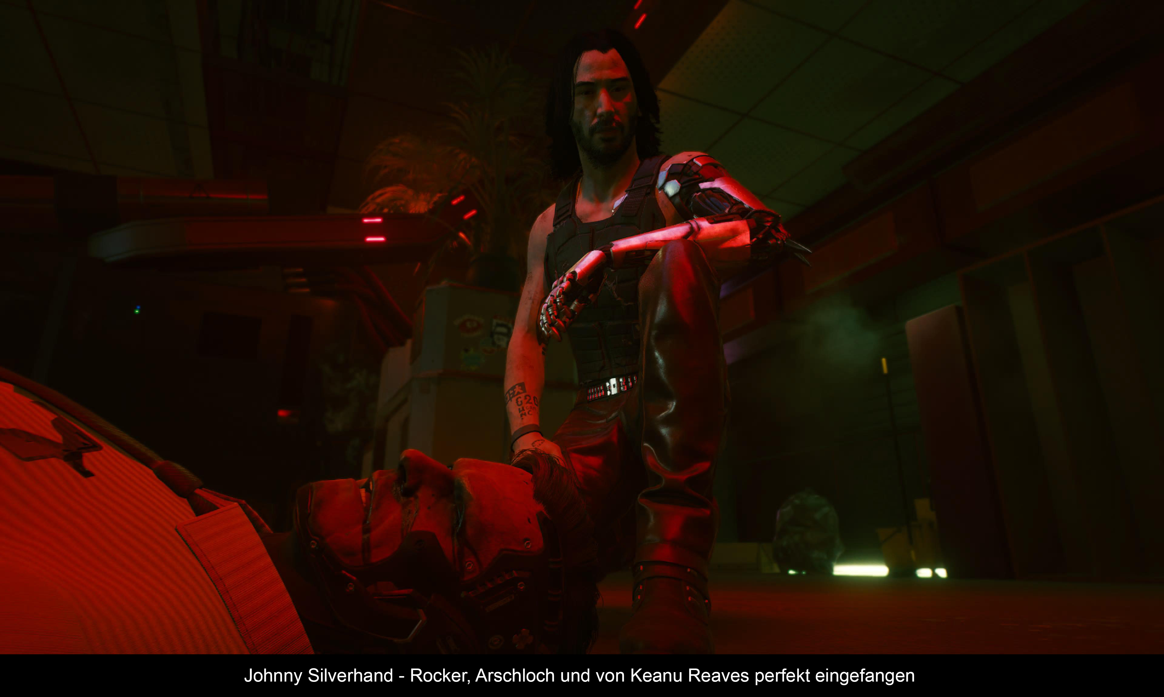 Ein großes Lob verdient übrigens auch der Sound. Da wäre zum einen die sensationell gute deutsche Synchronisation, welche durch die Bank weg überzeugen kann und viel zur Atmosphäre beiträgt. Ebenfalls haben sich die beiden Sprecher von V richtig ins Zeug gelegt und einen außergewöhnlichen Job abgeliefert. Von der dt. Synchronstimme von Keanu Reaves ganz zu Schweigen. Grundlage für die gelungene Vertonung ist die geniale deutsche Übersetzung, in welche definitiv viel Arbeit geflossen ist und die dadurch regelrecht authentisch wirkt. Das merkt man vor allem bei den Dialogen. Der umfangreiche Soundtrack unterstreicht die Postapokalypse zudem mehr als passend. Auch wenn viele Sachen krachig ausfallen, dürfte trotzdem für jeden Geschmack etwas dabei sein. Die Soundeffekte verdienen auch ein großes Lob und punkten mit tollen Samples, DualSense Unterstützung und coolem Raumklang.