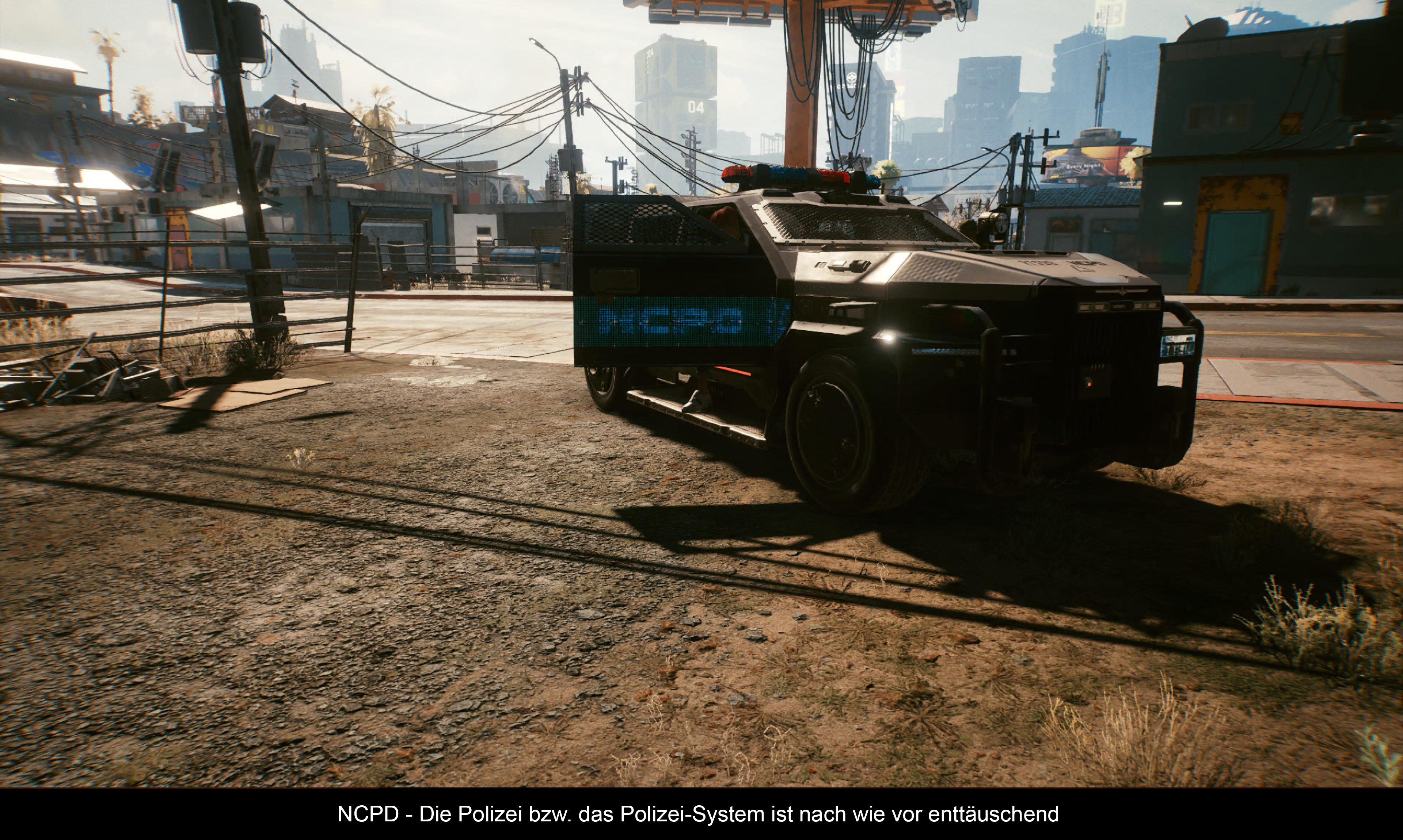 Aber nicht nur solche Unzulänglichkeiten verärgerten die Spielergemeinde. Ein anderes Thema war nämlich die Polizei in „Cyberpunk 2077“ bzw. wie diese umgesetzt wurde. Verursachte man zum Beispiel einen Aufruhr in der Öffentlichkeit, dann waren die Gesetzeshüter schnell zur Stelle. So schnell, dass die gleich neben dem Spieler hervorspawnten. Und zwar solange bis der Spieler tot war, oder aber erfolgreich flüchtete. Hier reichte es oftmals aus, 500m mit einem Fahrzeug zu fahren, denn dann verlor die Ordnungsmacht bereits das Interesse. Verfolgungsjagden? Fehlanzeige. Und wie sieht es heute damit aus? Wirklich viel hat sich dabei nicht getan. Noch immer ploppen die Polizisten einfach neben dem Spieler auf und lassen sich mittels Auto leicht wieder abschütteln. Etwas befremdlich, wenn man bedenkt, wie gut so viele andere Sachen in dem Abenteuer simuliert werden.