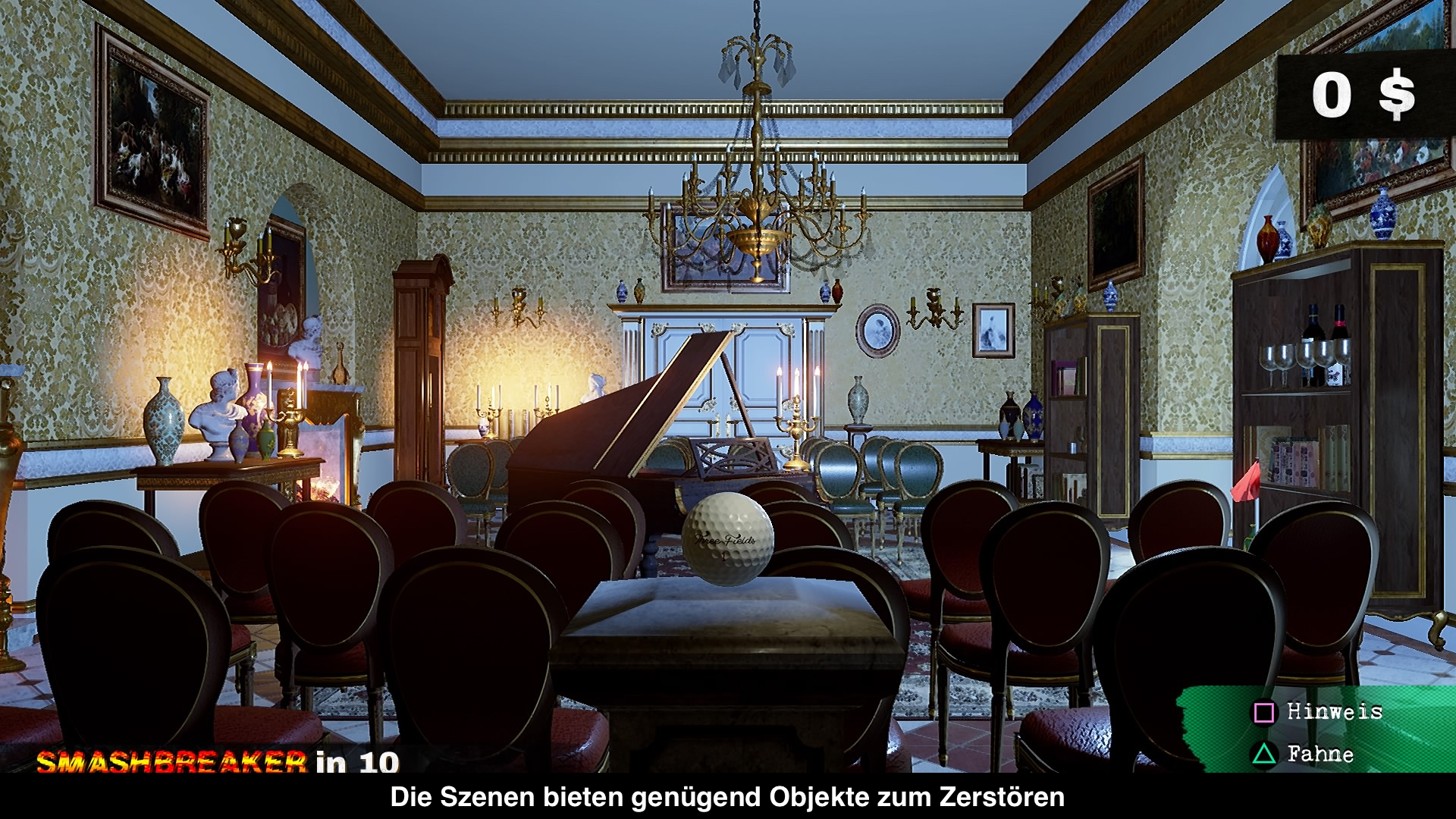 Erinnert ihr euch noch an den Crash-Modus der Burnout Serie? Dabei handelte es sich um einen Extra-Modus, wo man mit voller Geschwindigkeit in andere Autos und Gegenstände knallte, um dann im Anschluss mit Hilfe von Explosionen möglichst viele Sachen zu zerstören. Umso mehr Objekte man zerstört hat, desto größer war am Ende auch die Endpunkzahl. Und dies ist im Grunde auch das Prinzip hinter Dangerous Golf. Anstatt jedoch Karambolagen durch ein Auto in Gang zu setzen, hat man den Maßstab etwas zurückgeschraubt. Stattdessen nutzt man nun einen Golfball, um möglichst viel Schaden anzurichten. Da es auf dem offiziellen Grün jedoch kaum etwas zu zerstören gibt, hat man sich für das Abschlagen der Bälle für gewöhnliche Einrichtungen, wie Küchen oder Museen entschieden, wo haufenweise Objekte darauf warten zerstört und demoliert zu werden. Es gibt vier Länder, die jeweils mehrere Levels beinhalten, insgesamt gibt es über 90 Level. Leider bleibt die optische Variation dabei oftmals auf der Strecke, wodurch man immer wieder auf die gleichen Schauplätze trifft, nur die Missionsziele ändern sich von Kurs zu Kurs. Ein bisschen mehr Abwechslung wäre wünschenswert gewesen. Ebenso wünschenswert wäre ein ausgeglichener Schwierigkeitsgrad gewesen, weil in den späteren Missionen vieles vom Zufall abhängig ist. Positiv anzumerken ist die Tatsache, dass man die Kampagne auch mit im Co-Op-Modus spielen kann.