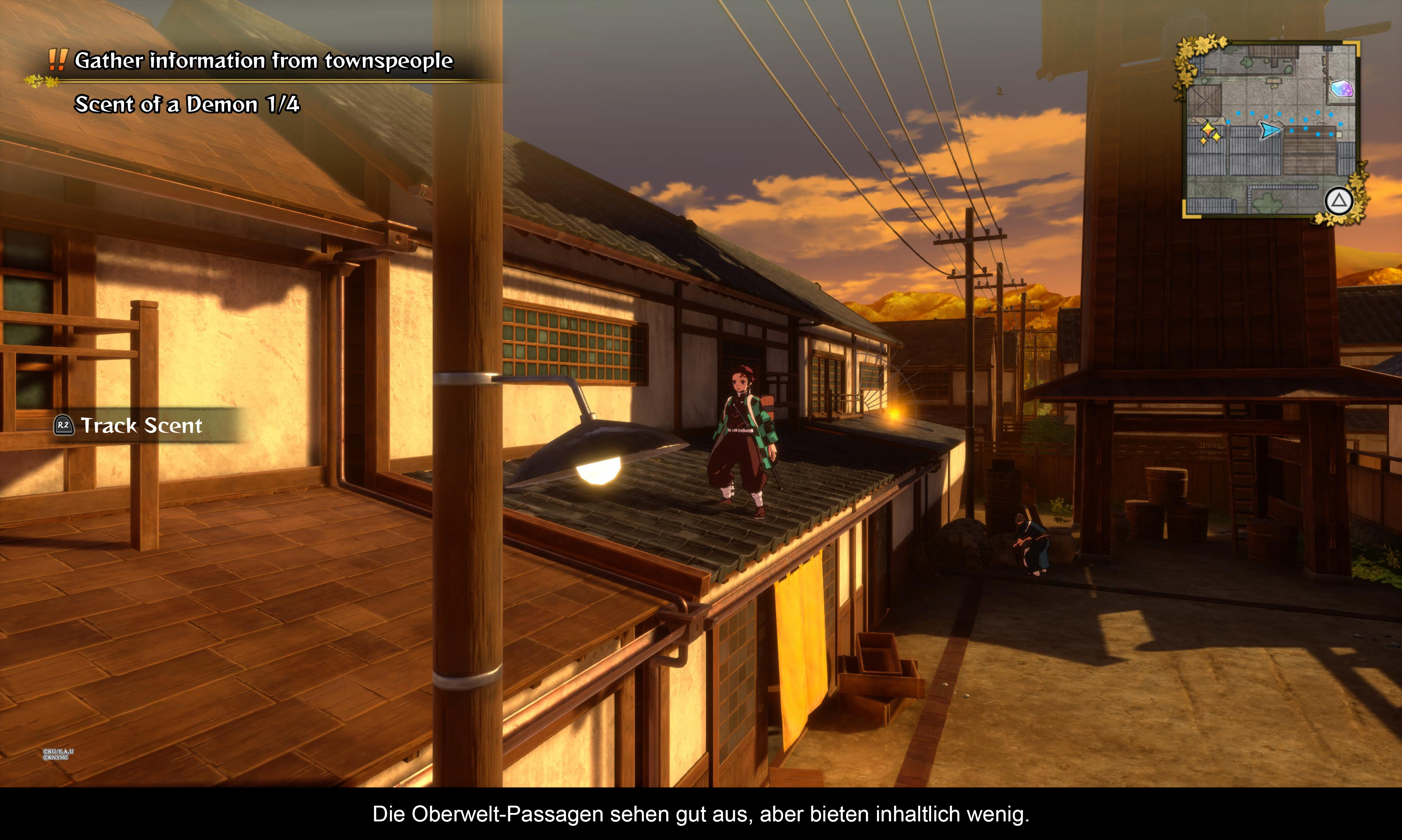 Während den Entwicklern beim Inhalt sicherlich die Hände gebunden waren, wurden sie bei der grafischen Präsentation des Titels definitiv nicht zurückgehalten. Sowohl die Momente in der Oberwelt als auch die Kampfpassagen sehen auf der PS5 absolut vom Feinsten aus. Cyber Connect 2 wirft mit Sicherheit nicht die meisten Pixel um sich, aber dennoch ist es den Entwicklern gelungen eine wunderschöne Digitalisierung des Original-Artstyles zu erschaffen. Fans das Animes werden sich ganz schnell wie Zuhause fühlen. Und vor allem in den bombastischen QTEs sowie in den zahlreichen Zwischensequenzen lassen die Entwickler wirklich ihre Muskeln spielen. Und während das Spiel zunächst nur mit einem 30 FPS-Modus veröffentlicht wurde, gibt es inzwischen sogar noch einen 60 FPS Patch, der zwar nur die Gameplay-Passagen aufwertet, aber dennoch eine gerne gesehene Hinzugabe ist, weil die PS5 definitiv die Power dafür hat. Ebenfalls lobenswert ist der Soundtrack, der 1 zu 1 von der Serie übernommen wurde und äußerst mitreißend ist. Was die Sprachausgabe angeht, bietet Demon Slayer sowohl eine japanische als auch eine englische Tonspur, wo jeweils die Orignal-Synchronsprecher eingesetzt werden. Und genau so wie im Anime, liefern eine eine absolut einwandfreie Leistung ab.